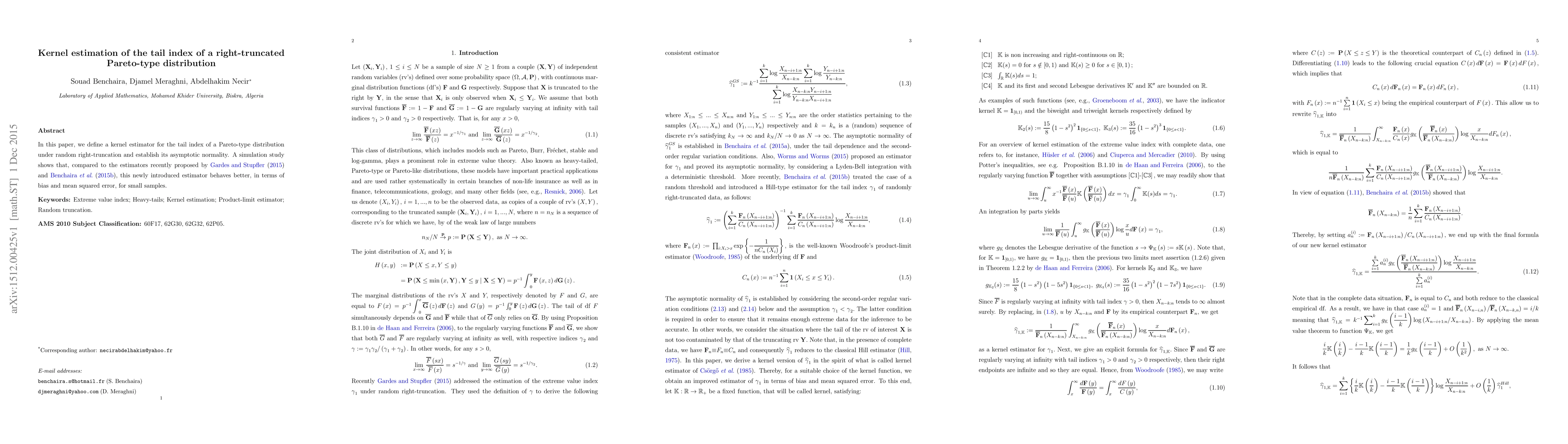 This paper introduces a kernel estimator for the tail index of right-truncated Pareto-type distributions, proving its asymptotic normality. Simulation results indicate superior performance in bias and mean squared error compared to existing estimators.