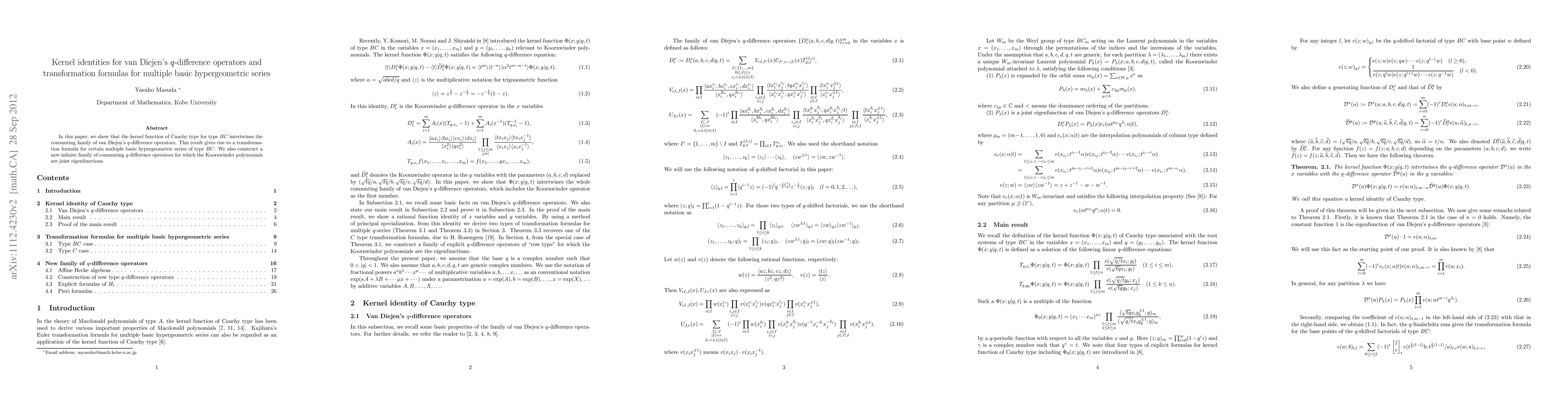 In this paper, we show that the kernel function of Cauchy type for type $BC$ intertwines the commuting family of van Diejen's $q$-difference operators. This result gives rise to a transformation formula for certain multiple basic hypergeometric series of type $BC$. We also construct a new infinite family of commuting $q$-difference operators for which the Koornwinder polynomials are joint eigenfunctions.