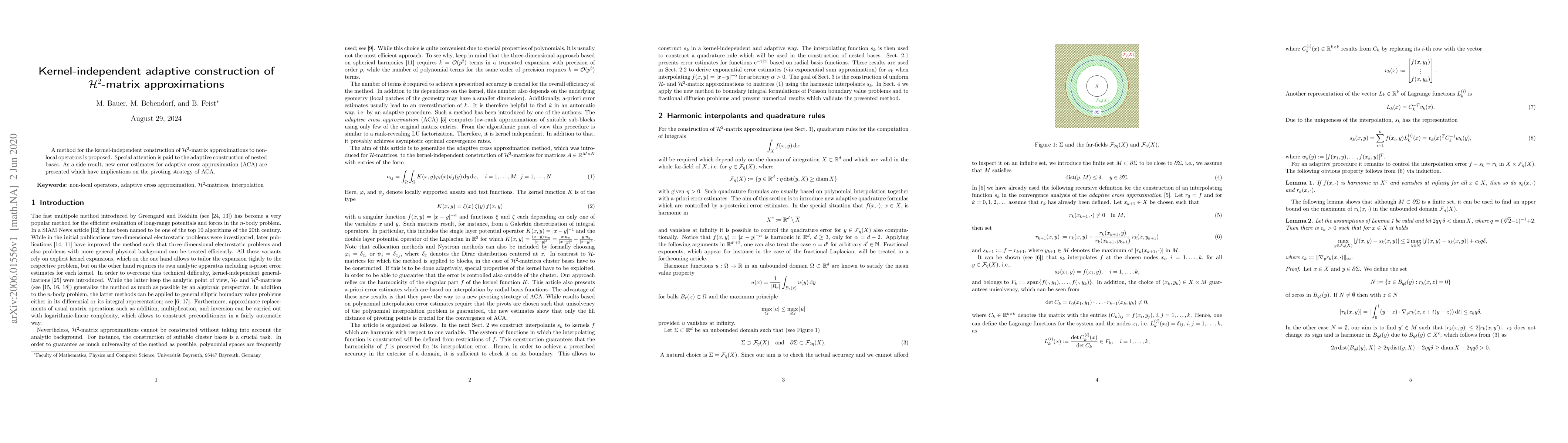 This paper introduces a kernel-independent method for constructing $mathcal{H}^2$-matrix approximations of non-local operators, emphasizing adaptive nested basis creation. It also provides novel error estimates for adaptive cross approximation, impacting pivoting strategies in ACA.