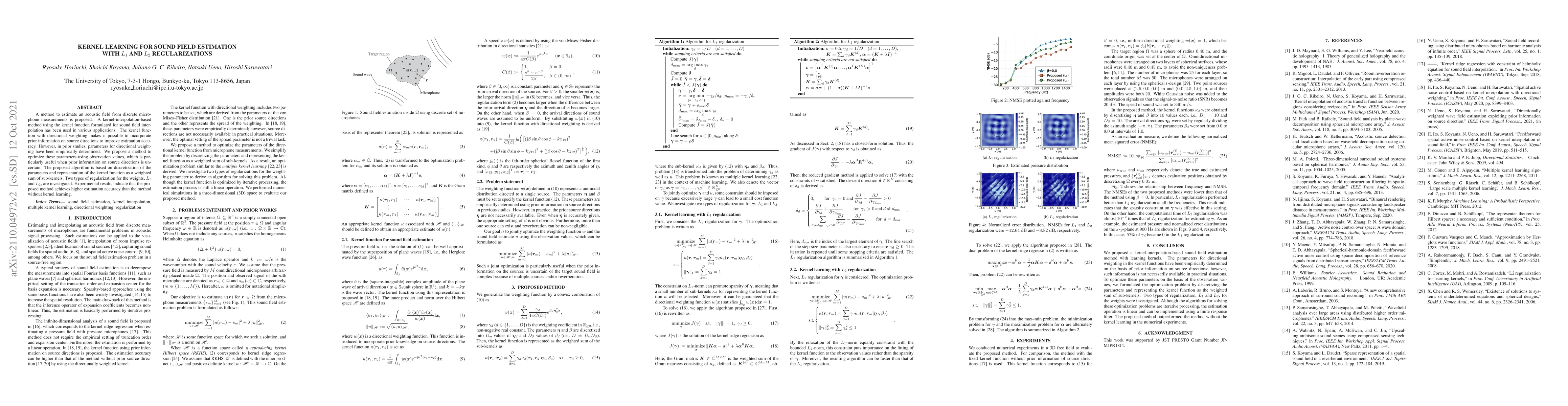 A new method for estimating sound fields from microphone measurements uses kernel learning with L1 and L2 regularization to improve accuracy, outperforming existing methods.