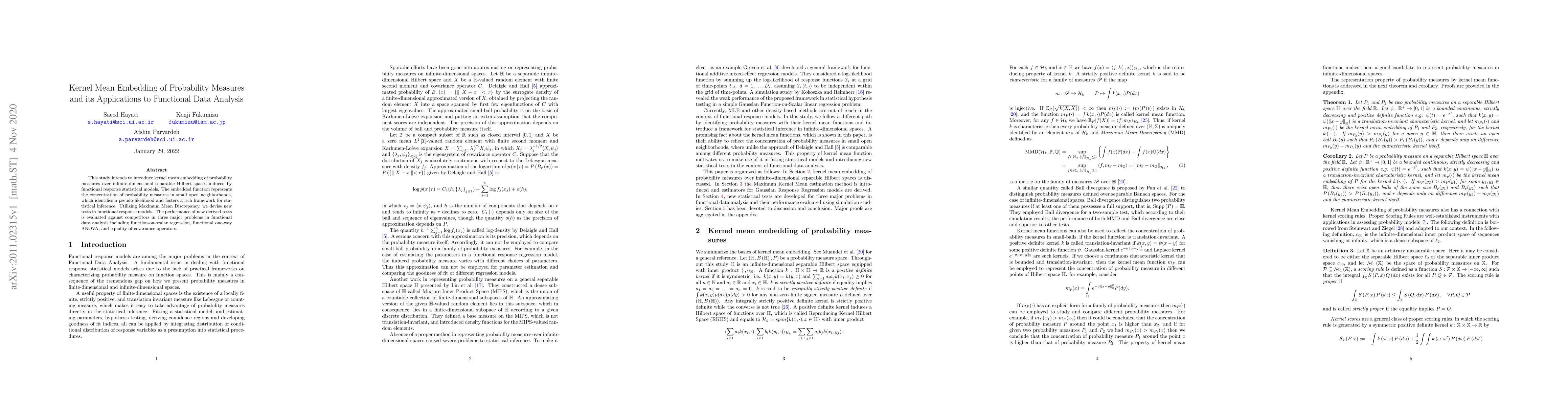 This study intends to introduce kernel mean embedding of probability measures over infinite-dimensional separable Hilbert spaces induced by functional response statistical models. The embedded function represents the concentration of probability measures in small open neighborhoods, which identifies a pseudo-likelihood and fosters a rich framework for statistical inference. Utilizing Maximum Mean Discrepancy, we devise new tests in functional response models. The performance of new derived tests is evaluated against competitors in three major problems in functional data analysis including function-on-scalar regression, functional one-way ANOVA, and equality of covariance operators.