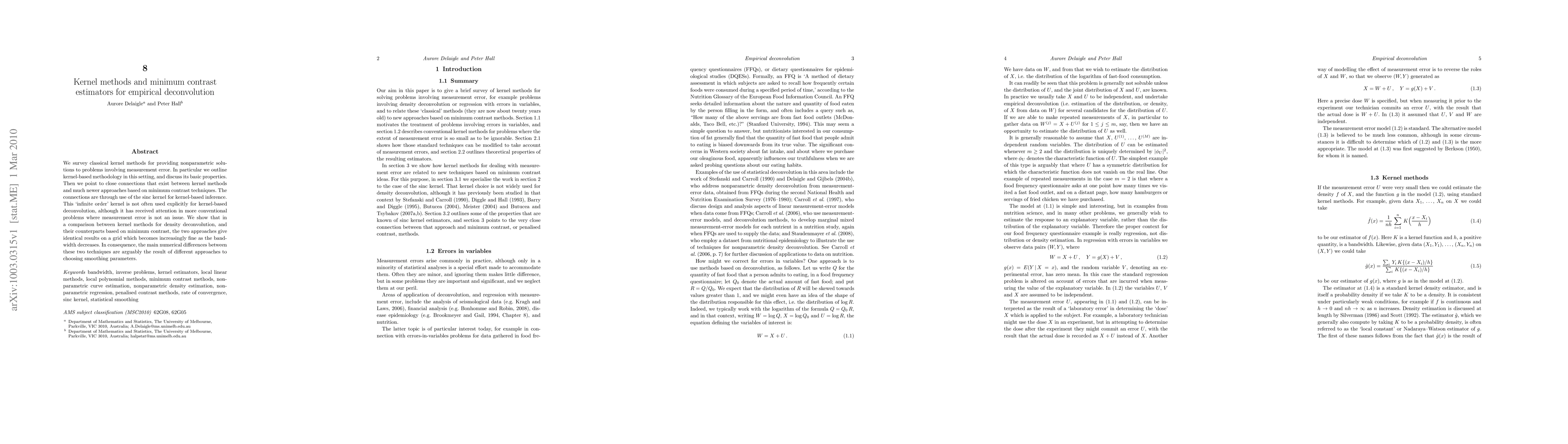 We survey classical kernel methods for providing nonparametric solutions to problems involving measurement error. In particular we outline kernel-based methodology in this setting, and discuss its basic properties. Then we point to close connections that exist between kernel methods and much newer approaches based on minimum contrast techniques. The connections are through use of the sinc kernel for kernel-based inference. This `infinite order' kernel is not often used explicitly for kernel-based deconvolution, although it has received attention in more conventional problems where measurement error is not an issue. We show that in a comparison between kernel methods for density deconvolution, and their counterparts based on minimum contrast, the two approaches give identical results on a grid which becomes increasingly fine as the bandwidth decreases. In consequence, the main numerical differences between these two techniques are arguably the result of different approaches to choosing smoothing parameters.