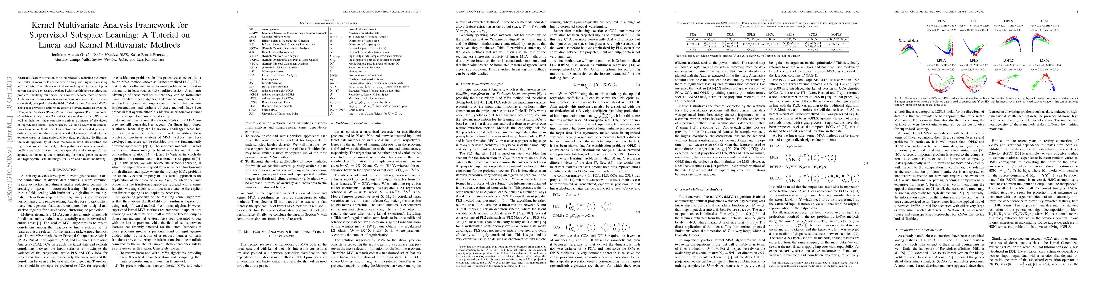 This paper presents a unified framework for supervised subspace learning methods, including PCA, PLS, CCA, and OPLS, and their non-linear kernel extensions. It explores their applications in classification, regression, audio processing, and hyperspectral image analysis, offering insights into handling large-scale and low-sized data problems.