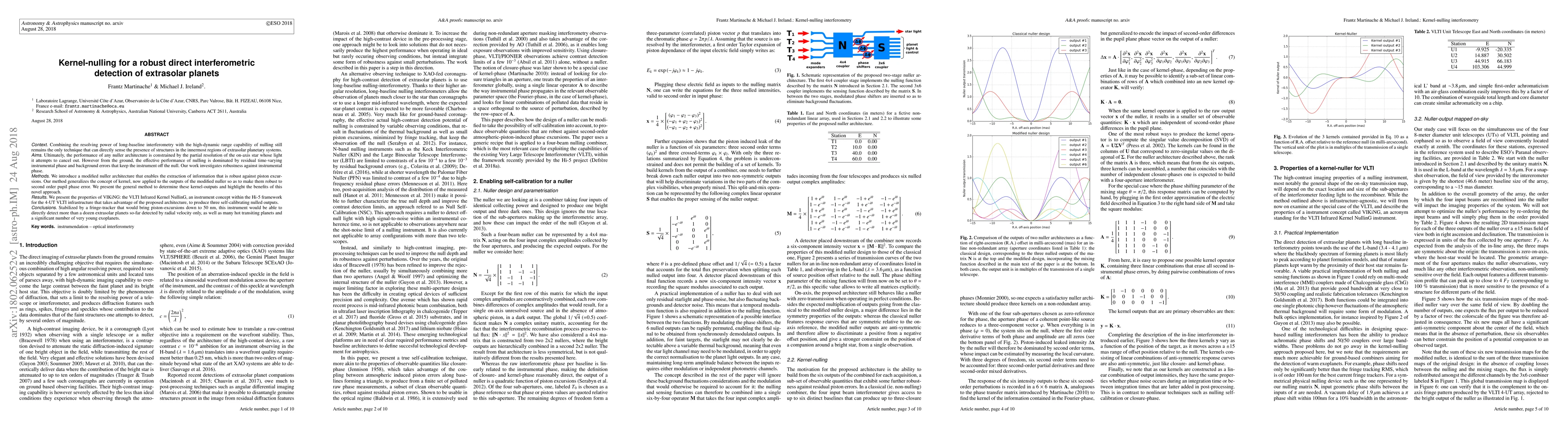 Combining the resolving power of long-baseline interferometry with the high-dynamic range capability of nulling still remains the only technique that can directly sense the presence of structures in the innermost regions of extrasolar planetary systems. Ultimately, the performance of any nuller architecture is constrained by the partial resolution of the on-axis star whose light it attempts to cancel out. However from the ground, the effective performance of nulling is dominated by residual time-varying instrumental phase and background errors that keep the instrument off the null. Our work investigates robustness against instrumental phase. We introduce a modified nuller architecture that enables the extraction of information that is robust against piston excursions. Our method generalizes the concept of kernel, now applied to the outputs of the modified nuller so as to make them robust to second order pupil phase error. We present the general method to determine these kernel-outputs and highlight the benefits of this novel approach. We present the properties of VIKiNG: the VLTI Infrared Kernel NullinG, an instrument concept within the Hi-5 framework for the 4-UT VLTI infrastructure that takes advantage of the proposed architecture, to produce three self-calibrating nulled outputs. Stabilized by a fringe-tracker that would bring piston-excursions down to 50 nm, this instrument would be able to directly detect more than a dozen extrasolar planets so-far detected by radial velocity only, as well as many hot transiting planets and a significant number of very young exoplanets.