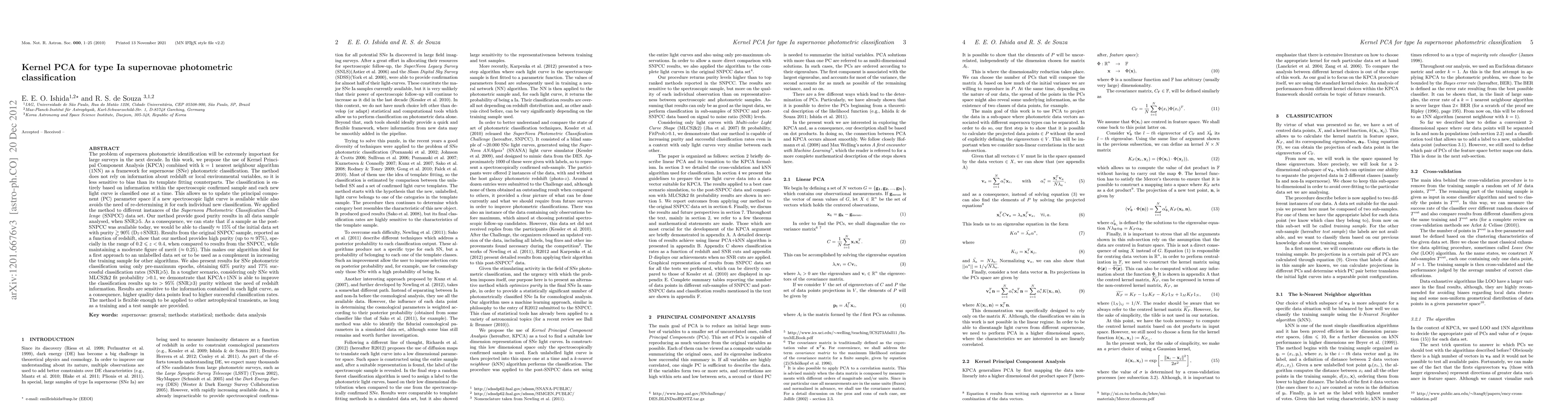 A new method using Kernel Principal Component Analysis (KPCA) and k=1 nearest neighbor algorithm achieves high purity rates in supernovae photometric classification, especially for low-redshift objects, with potential to classify up to 15% of initial data set with over 90% accuracy.