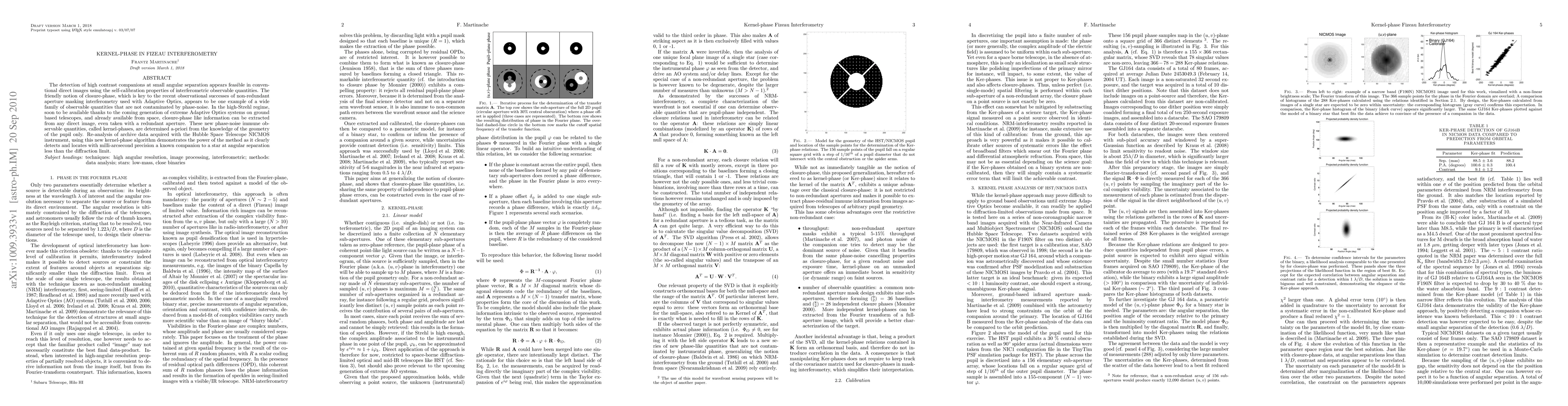 This paper introduces kernel-phases, a new set of phase-noise immune observable quantities in Fizeau interferometry, which can be extracted from direct images using self-calibration. The method, demonstrated on Hubble Space Telescope data, successfully detects high contrast companions at small angular separations with high precision.
