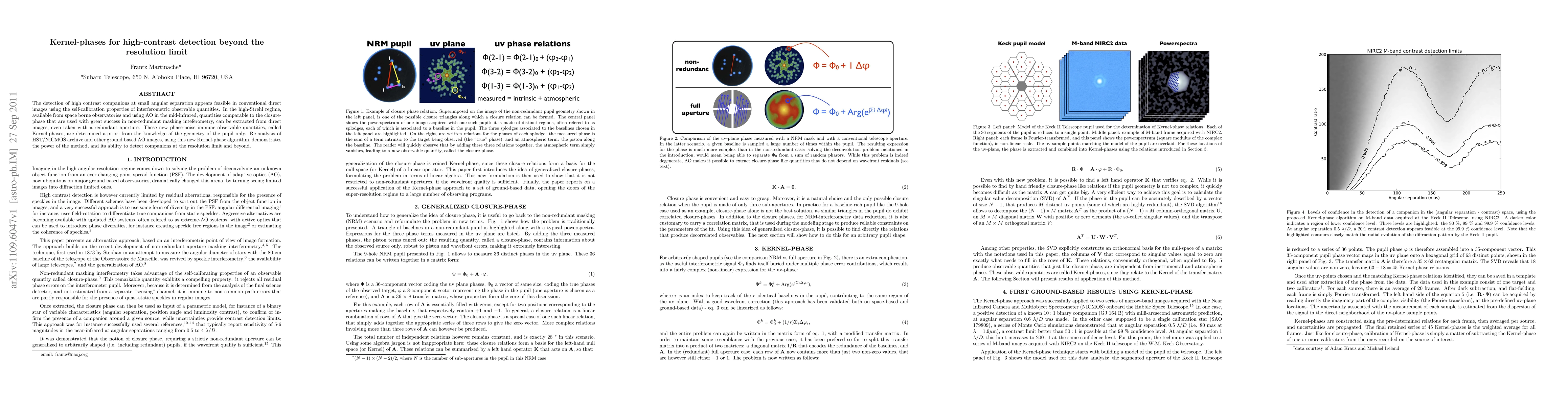 This research introduces Kernel-phases, quantities derived from interferometric observables, enabling high-contrast companion detection beyond resolution limits in direct images. Re-analysis of HST/NICMOS and ground-based AO images using Kernel-phase algorithm successfully detected companions at resolution limits.
