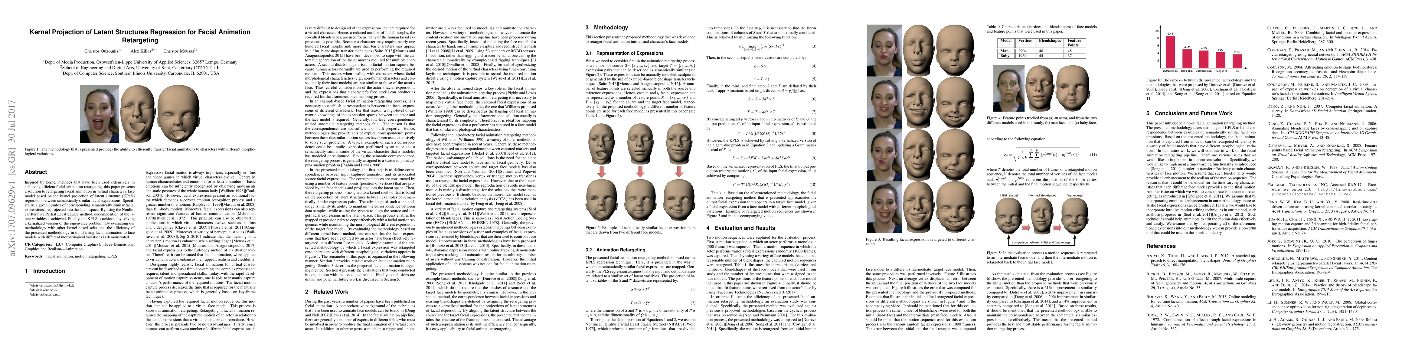 This paper proposes a Kernel Projection of Latent Structures Regression (KPLS) method for retargeting facial animations to virtual characters with different morphological features. The KPLS leverages kernel methods and Nonlinear Iterative Partial Least Squares to efficiently transfer semantically similar facial expressions.