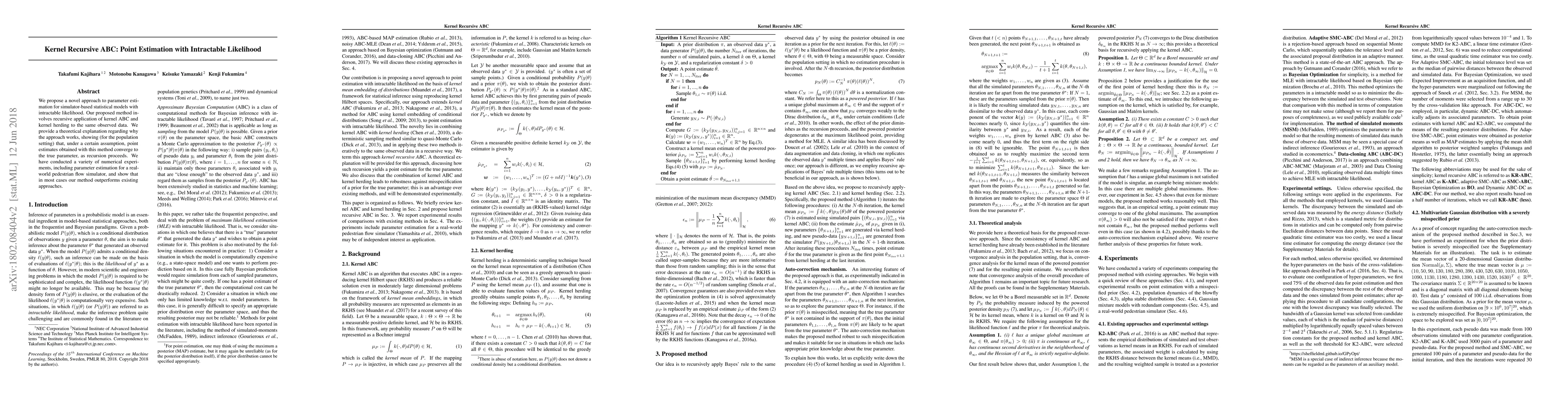 This paper introduces Kernel Recursive ABC, a novel method for parameter estimation in simulator-based models with intractable likelihoods, combining recursive kernel ABC and kernel herding. The method converges to true parameters under certain assumptions, and outperforms existing approaches in numerical experiments, including a real-world pedestrian flow simulator.