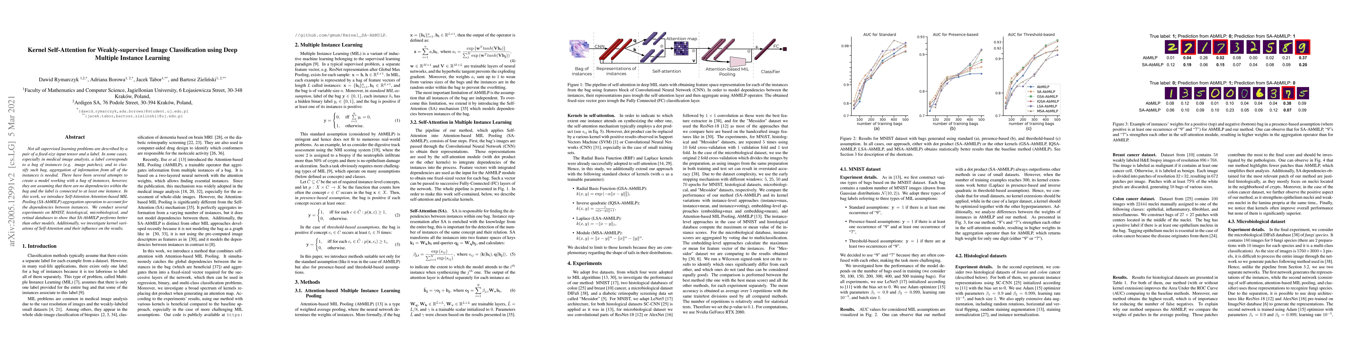 This paper introduces Self-Attention Attention-based MIL Pooling (SA-AbMILP) to handle multiple instance learning problems by accounting for dependencies between instances. Experiments on various datasets demonstrate that SA-AbMILP outperforms other models, and kernel variations of Self-Attention are also explored for their impact on performance.