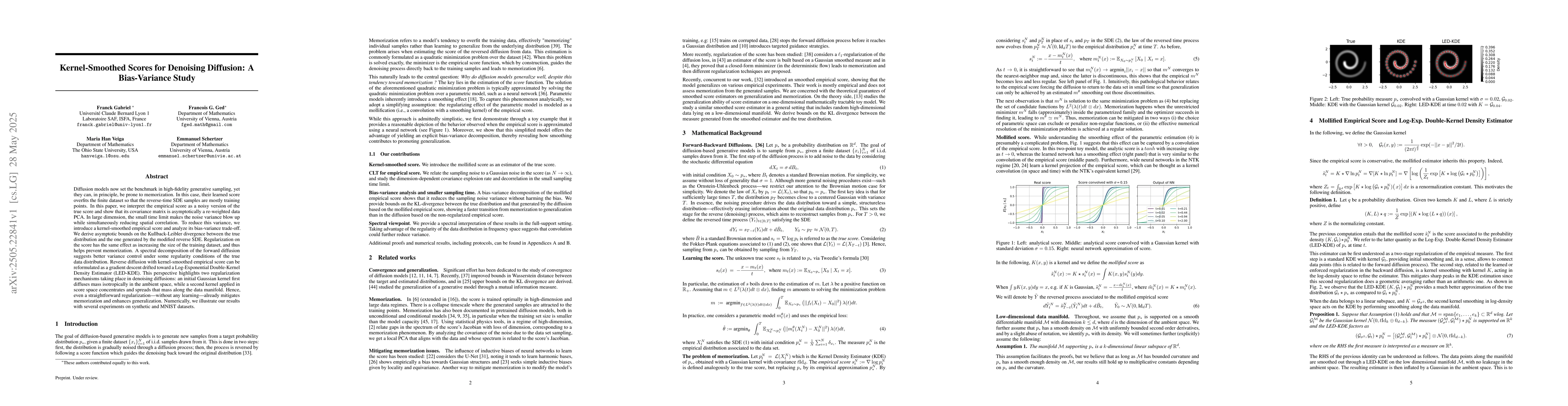The paper presents a kernel-smoothed empirical score approach for denoising diffusion models, analyzing its bias-variance trade-off and reformulating reverse diffusion as gradient descent toward a LED-KDE.