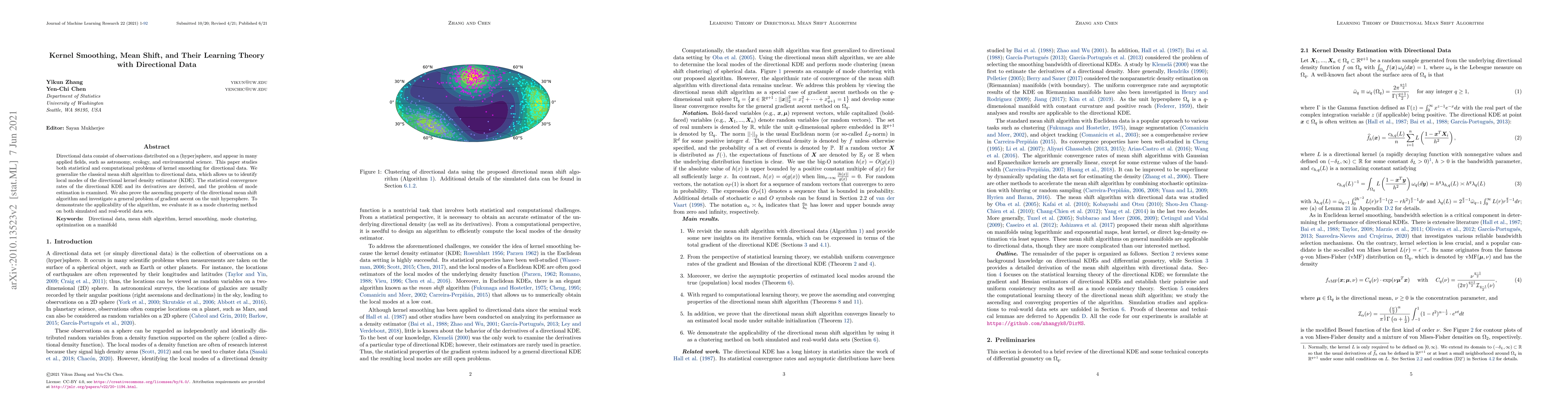 This paper explores kernel smoothing and the generalized mean shift algorithm for directional data on a (hyper)sphere, deriving convergence rates and proving the algorithm's ascending property. It demonstrates the method's effectiveness in mode clustering on both simulated and real-world datasets.