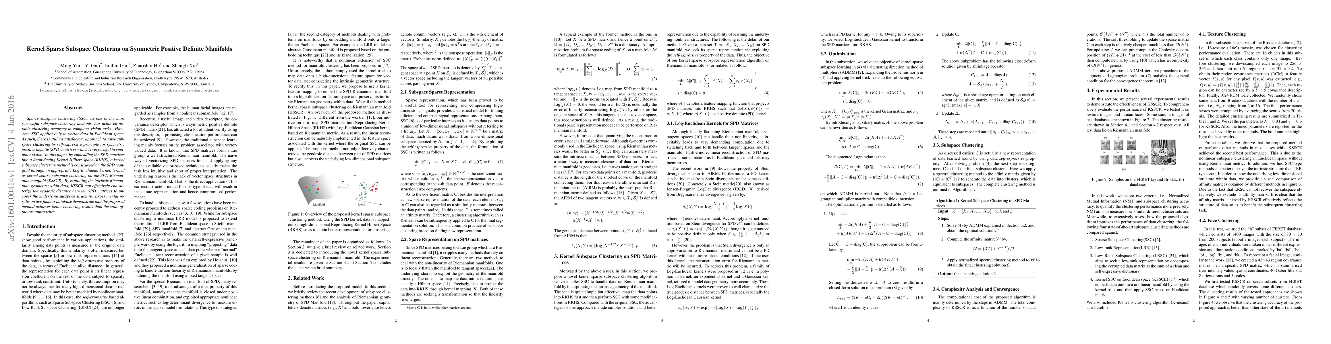 This paper proposes a kernel sparse subspace clustering method, KSSCR, to address clustering of symmetric positive definite matrices on Riemannian manifolds, embedding them into a Reproducing Kernel Hilbert Space using a Log-Euclidean kernel. The approach leverages the intrinsic Riemannian geometry for better clustering accuracy, outperforming existing methods on standard datasets.