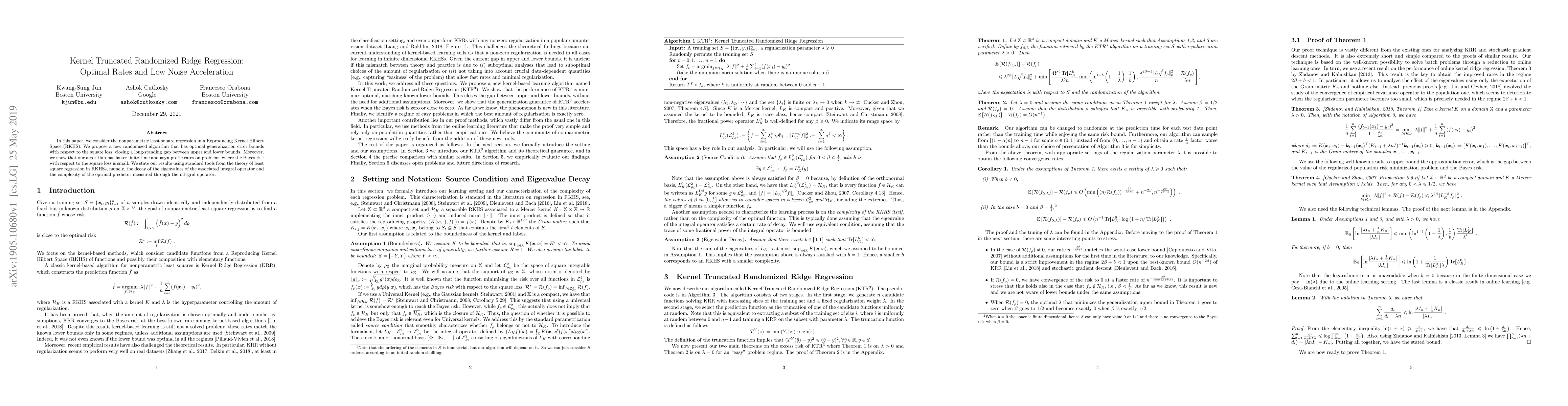 In this paper, we consider the nonparametric least square regression in a Reproducing Kernel Hilbert Space (RKHS). We propose a new randomized algorithm that has optimal generalization error bounds with respect to the square loss, closing a long-standing gap between upper and lower bounds. Moreover, we show that our algorithm has faster finite-time and asymptotic rates on problems where the Bayes risk with respect to the square loss is small. We state our results using standard tools from the theory of least square regression in RKHSs, namely, the decay of the eigenvalues of the associated integral operator and the complexity of the optimal predictor measured through the integral operator.
