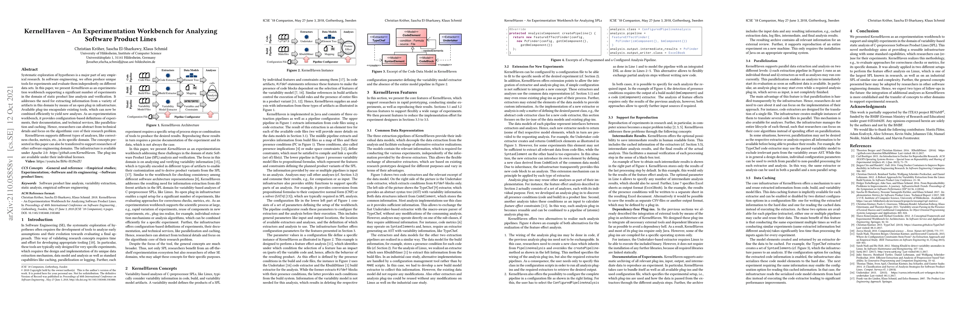KernelHaven is an experimentation workbench for analyzing software product lines, providing a flexible infrastructure for researchers to design and execute experiments, abstracting from technical details and focusing on algorithmic core.