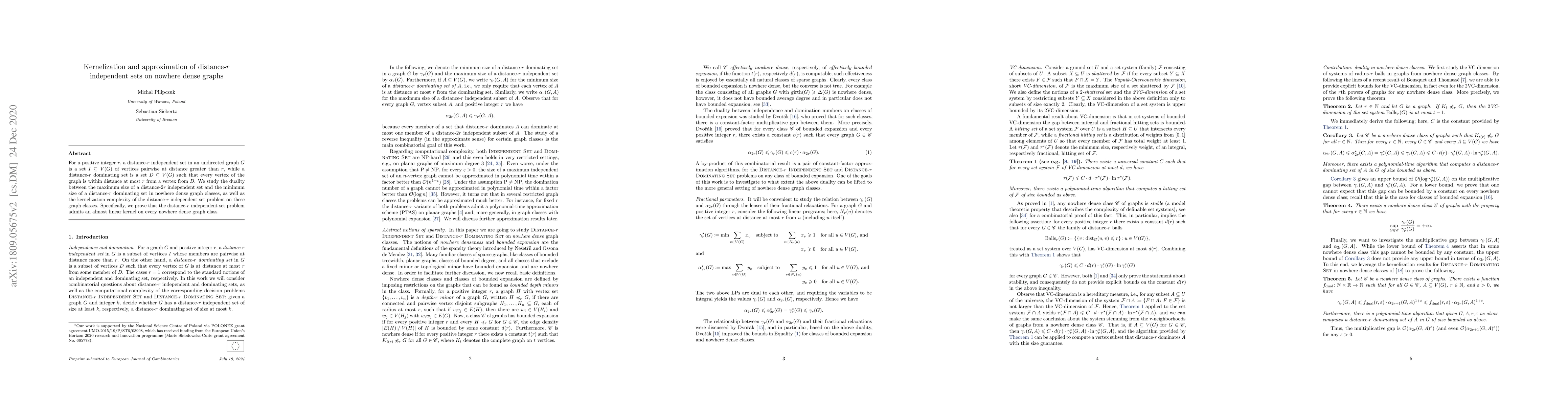 The paper analyzes distance-$r$ independent sets and distance-$r$ dominating sets on nowhere dense graphs, employing kernelization techniques to prove almost linear kernels for the distance-$r$ independent set problem on these graph classes. The duality between maximum distance-$2r$ independent sets and minimum distance-$r$ dominating sets is studied.