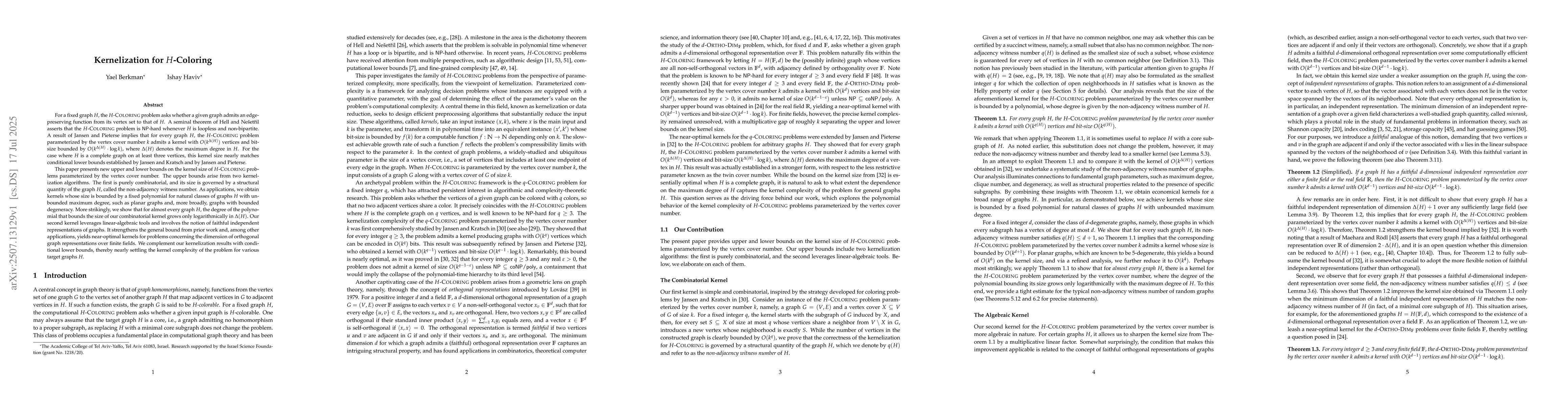 For a fixed graph $H$, the $H$-Coloring problem asks whether a given graph admits an edge-preserving function from its vertex set to that of $H$. A seminal theorem of Hell and Ne\v{s}et\v{r}il asserts that the $H$-Coloring problem is NP-hard whenever $H$ is loopless and non-bipartite. A result of Jansen and Pieterse implies that for every graph $H$, the $H$-Coloring problem parameterized by the vertex cover number $k$ admits a kernel with $O(k^{\Delta(H)})$ vertices and bit-size bounded by $O(k^{\Delta(H)} \cdot \log k)$, where $\Delta(H)$ denotes the maximum degree in $H$. For the case where $H$ is a complete graph on at least three vertices, this kernel size nearly matches conditional lower bounds established by Jansen and Kratsch and by Jansen and Pieterse. This paper presents new upper and lower bounds on the kernel size of $H$-Coloring problems parameterized by the vertex cover number. The upper bounds arise from two kernelization algorithms. The first is purely combinatorial, and its size is governed by a structural quantity of the graph $H$, called the non-adjacency witness number. As applications, we obtain kernels whose size is bounded by a fixed polynomial for natural classes of graphs $H$ with unbounded maximum degree. More strikingly, we show that for almost every graph $H$, the degree of the polynomial that bounds the size of our combinatorial kernel grows only logarithmically in $\Delta(H)$. Our second kernel leverages linear-algebraic tools and involves the notion of faithful independent representations of graphs. It strengthens the general bound from prior work and, among other applications, yields near-optimal kernels for problems concerning the dimension of orthogonal graph representations over finite fields. We complement these results with conditional lower bounds, thereby nearly settling the kernel complexity of the problem for various target graphs $H$.