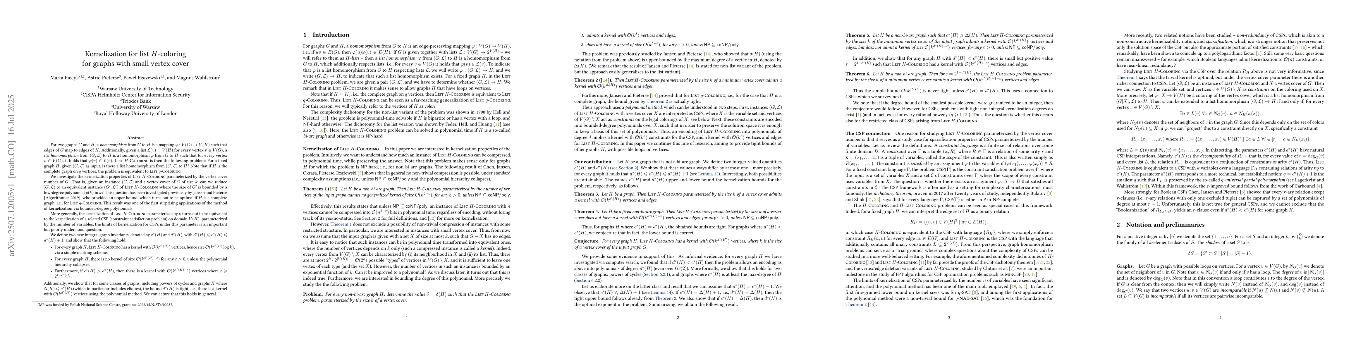 For a fixed graph $H$, in the List $H$-Coloring problem, we are given a graph $G$ along with list $L(v) \subseteq V(H)$ for every $v \in V(G)$, and we have to determine if there exists a list homomorphism $\varphi$ from $(G,L)$ to $H$, i.e., an edge preserving mapping $\varphi: V(G)\to V(H)$ that satisfies $\varphi(v)\in L(v)$ for every $v\in V(G)$. Note that if $H$ is the complete graph on $q$ vertices, the problem is equivalent to List $q$-Coloring. We investigate the kernelization properties of List $H$-Coloring parameterized by the vertex cover number of $G$: given an instance $(G,L)$ and a vertex cover of $G$ of size $k$, can we reduce $(G,L)$ to an equivalent instance $(G',L')$ of List $H$-Coloring where the size of $G'$ is bounded by a low-degree polynomial $p(k)$ in $k$? This question has been investigated previously by Jansen and Pieterse [Algorithmica 2019], who provided an upper bound, which turns out to be optimal if $H$ is a complete graph, i.e., for List $q$-Coloring. This result was one of the first applications of the method of kernelization via bounded-degree polynomials. We define two new integral graph invariants, $c^*(H)$ and $d^*(H)$, with $d^*(H) \leq c^*(H) \leq d^*(H)+1$, and show that for every graph $H$, List $H$-Coloring -- has a kernel with $\mathcal{O}(k^{c^*(H)})$ vertices, -- admits no kernel of size $\mathcal{O}(k^{d^*(H)-\varepsilon})$ for any $\varepsilon > 0$, unless the polynomial hierarchy collapses. -- Furthermore, if $c^*(H) > d^*(H)$, then there is a kernel with $\mathcal{O}(k^{c^*(H)-\varepsilon})$ vertices where $\varepsilon \geq 2^{1-c^*(H)}$. Additionally, we show that for some classes of graphs, including powers of cycles and graphs $H$ where $\Delta(H) \leq c^*(H)$ (which in particular includes cliques), the bound $d^*(H)$ is tight, using the polynomial method. We conjecture that this holds in general.