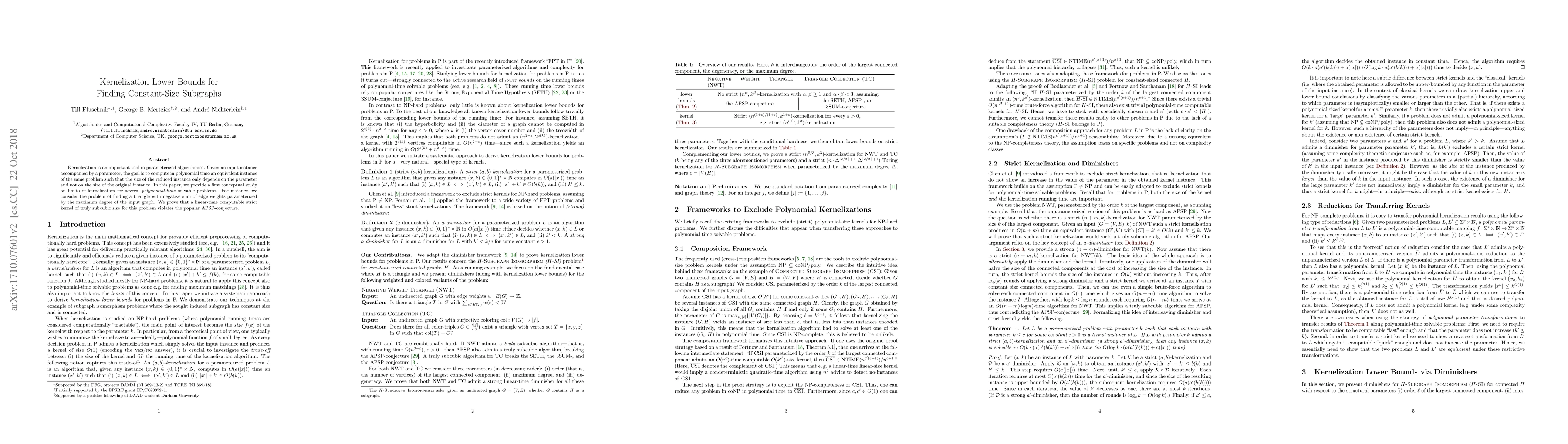 This paper studies the limits of kernelization for solving problems with constant-size subgraphs, finding that a linear-time computable strict kernel violating the APSP-conjecture is possible.