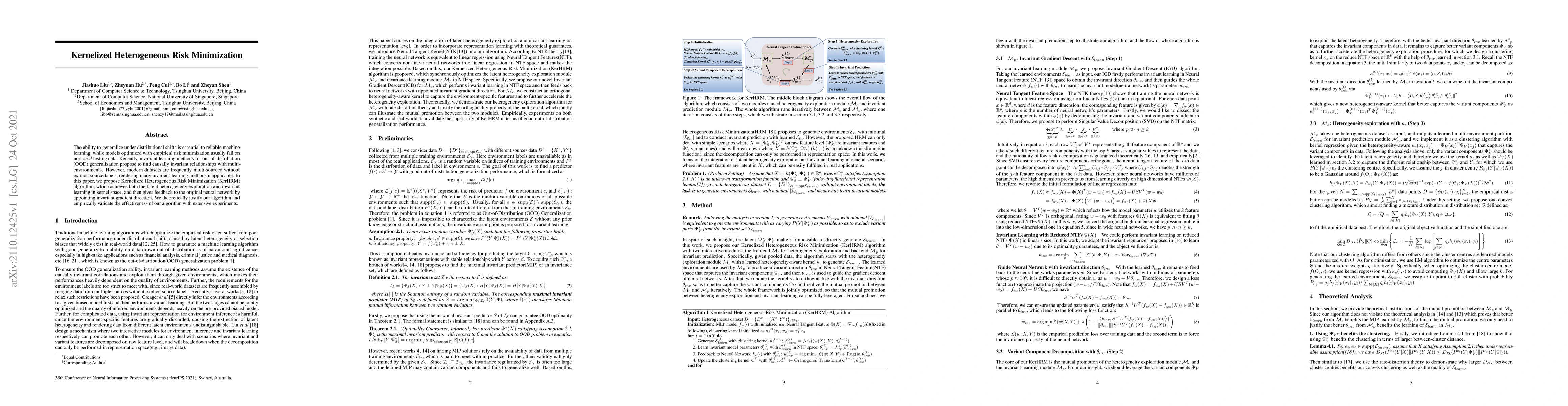 This paper introduces Kernelized Heterogeneous Risk Minimization (KerHRM), an algorithm that addresses the challenge of generalizing under distribution shifts in machine learning. KerHRM explores latent heterogeneity in kernel space and guides neural networks towards invariant learning, improving out-of-distribution generalization without requiring explicit source labels. The method is theoretically justified and validated through extensive experiments.