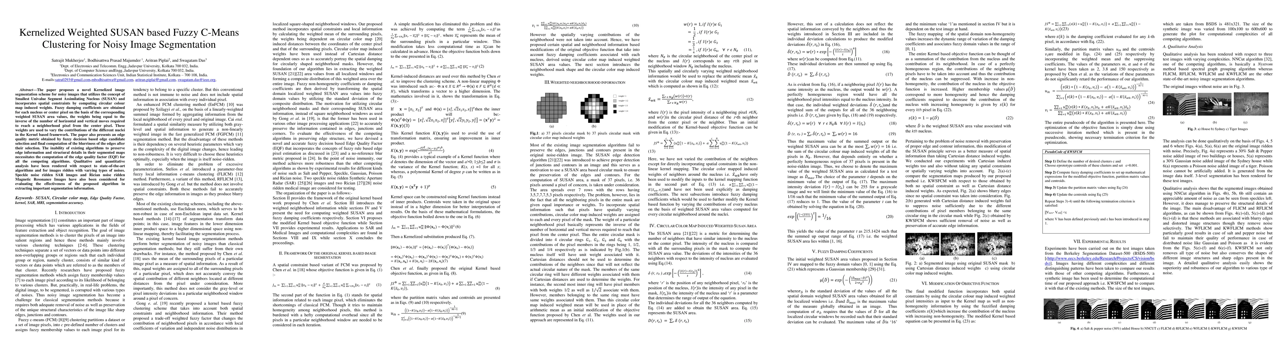 The paper introduces a new image segmentation method for noisy images, combining Kernelized techniques with the SUSAN algorithm and spatial weighting. It also presents an edge quality metric for evaluating segmentation results against existing algorithms, demonstrating improved performance on noisy images like SAR and MRI, preserving edges and structural details.