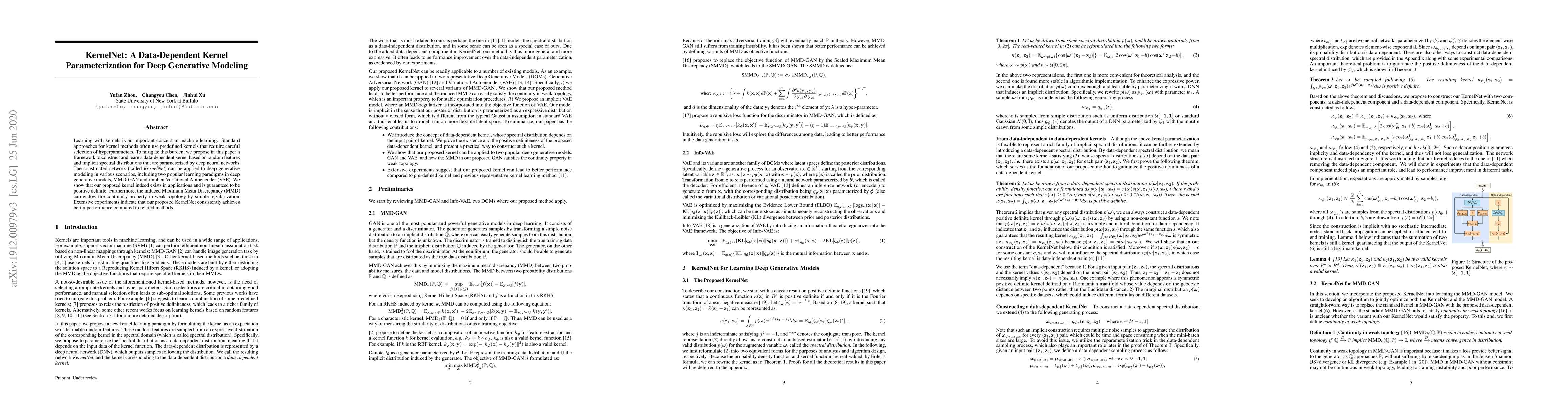 KernelNet introduces a data-dependent kernel parameterization using deep neural networks for random features, enhancing deep generative modeling. It outperforms traditional methods in MMD-GAN and VAE frameworks, demonstrating improved performance and positive definiteness.