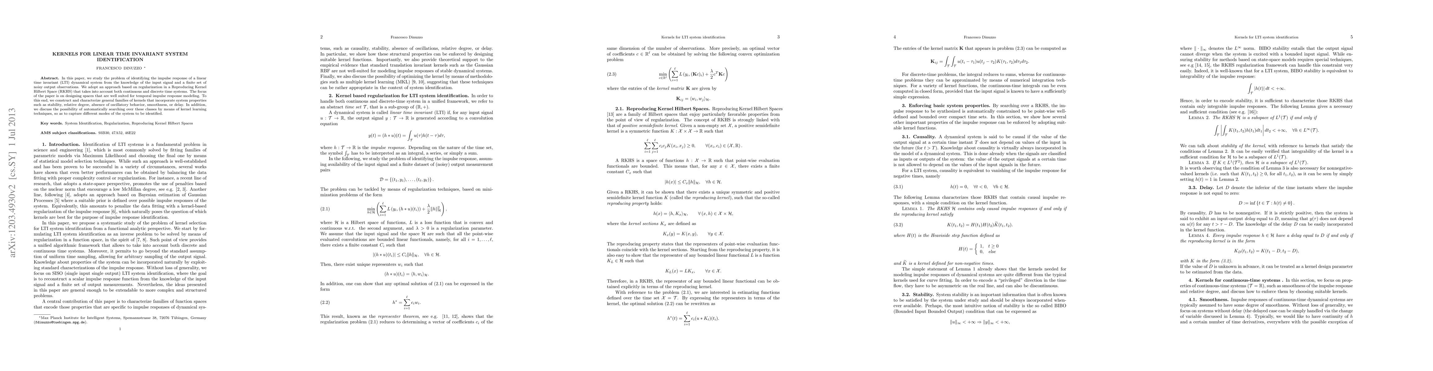Researchers develop new kernel methods for identifying linear time-invariant systems from noisy output signals, enabling more accurate modeling of system properties.