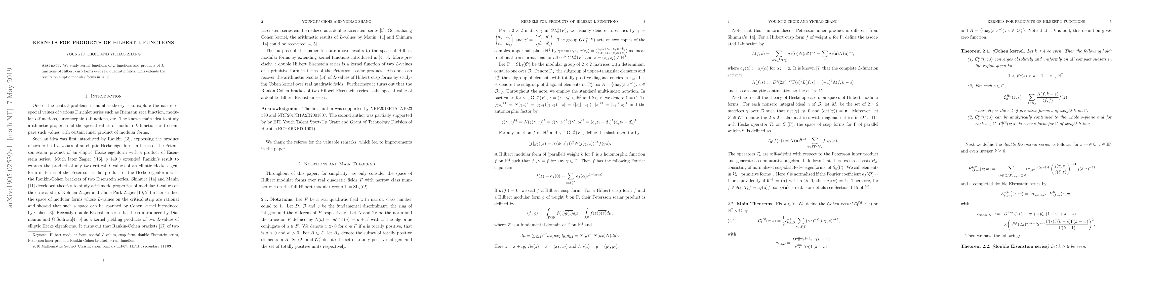 This paper extends previous work on elliptic modular forms to Hilbert cusp forms over real quadratic fields, exploring kernel functions of L-functions and their products.