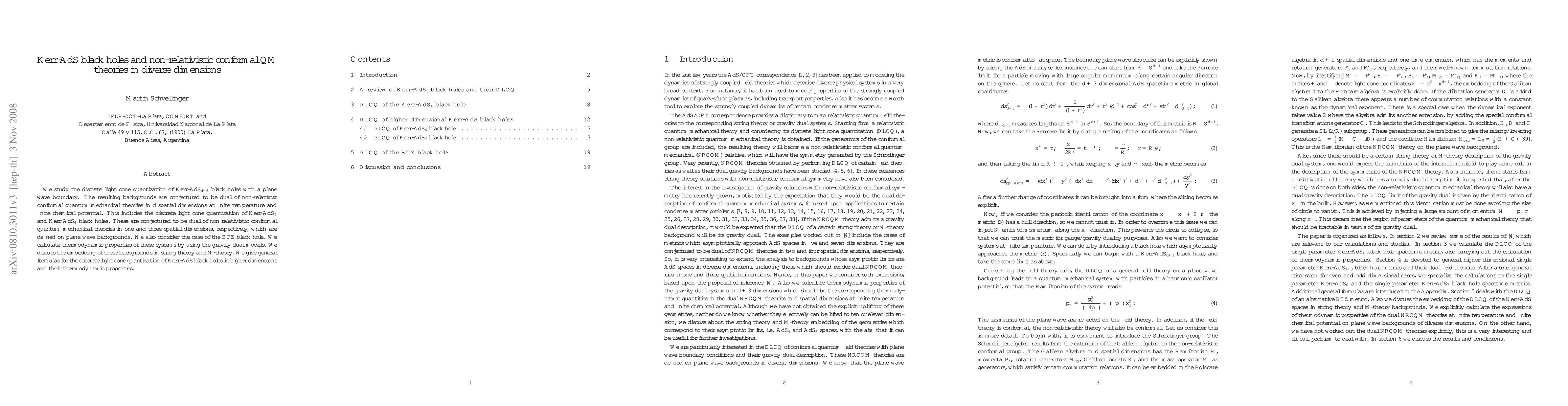 This paper explores the discrete light cone quantization of Kerr-AdS black holes in various dimensions, proposing a duality between these backgrounds and non-relativistic conformal quantum mechanical theories in lower dimensions. Thermodynamic properties are calculated using the corresponding gravity dual models, with implications for string theory and M-theory.