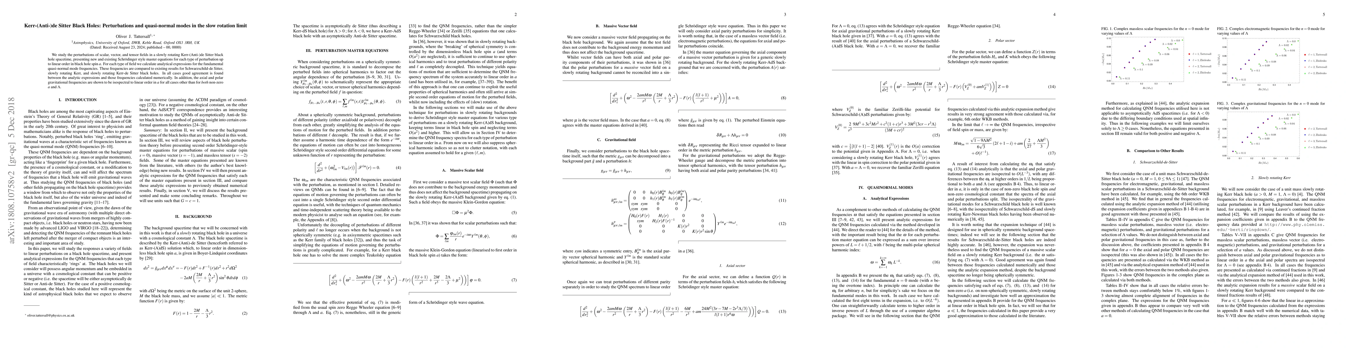 This paper investigates perturbations of scalar, vector, and tensor fields in slowly rotating Kerr-(Anti-)de Sitter black holes, deriving new Schrödinger-like master equations for each perturbation type. Analytical expressions for the quasi-normal mode frequencies are calculated and compared to existing numerical results, showing good agreement.