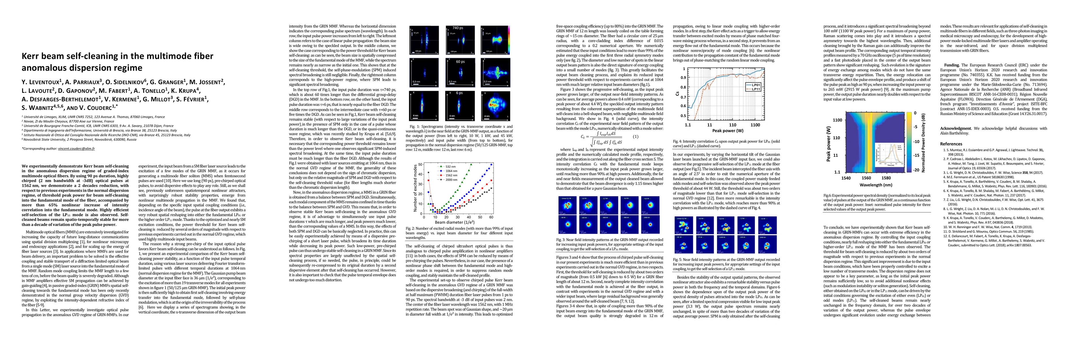 This research demonstrates Kerr beam self-cleaning in multimode fibers with anomalous dispersion, achieving a 2-decade reduction in threshold peak power compared to the normal dispersion regime. The self-cleaning process efficiently selects the LP11 mode and maintains beam stability over a wide range of peak pulse powers.