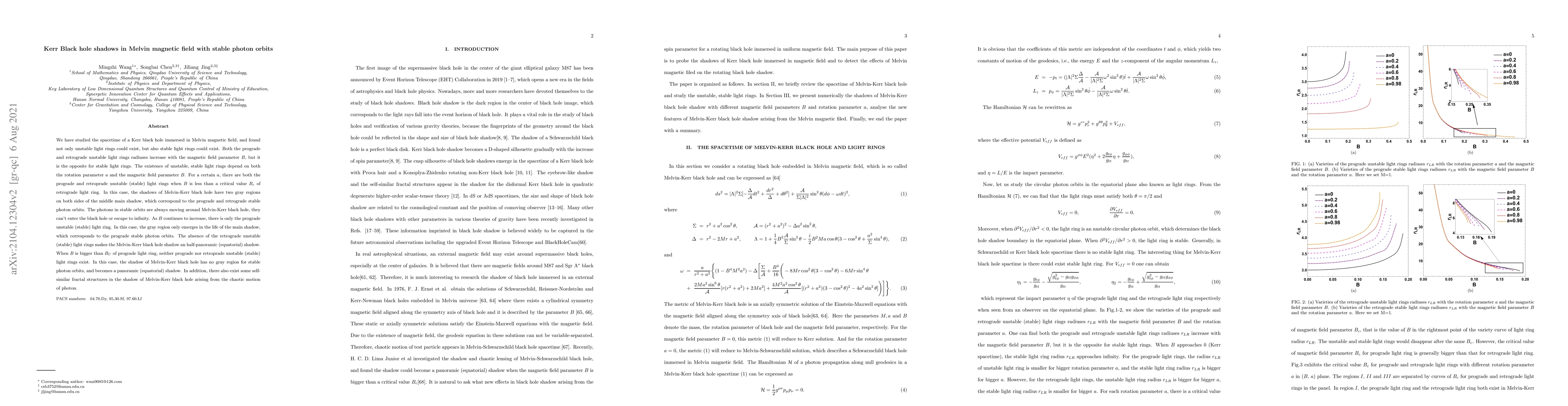 This paper investigates Kerr black hole shadows in a Melvin magnetic field, discovering both unstable and stable light rings. The presence and stability of these rings depend on the rotation parameter and magnetic field strength, with implications for the black hole's shadow structure, including fractal patterns from photon chaos.