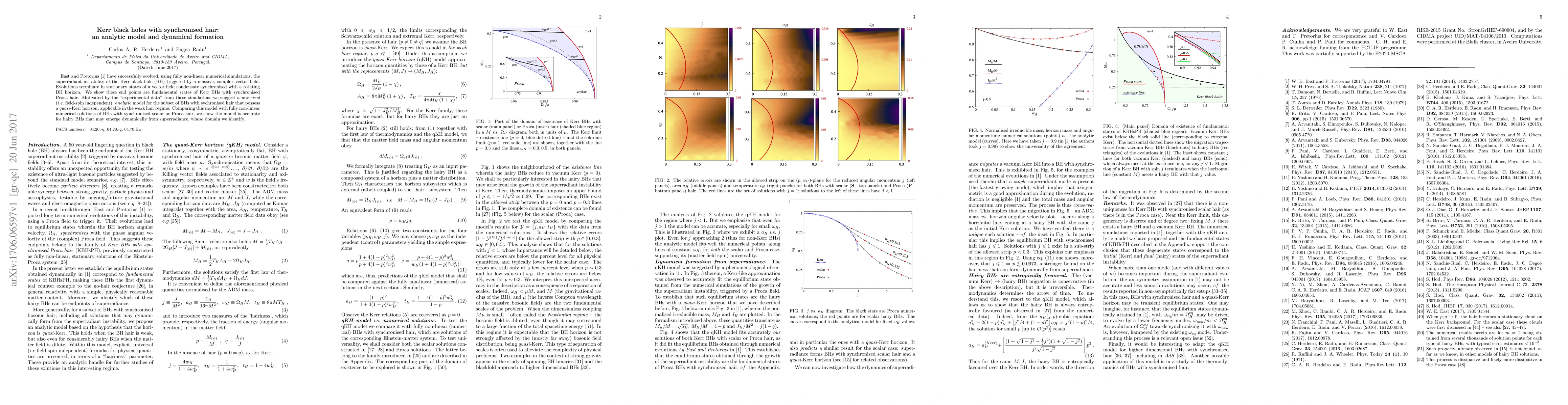 East and Pretorius (arXiv:1704.04791) have successfully evolved, using fully non-linear numerical simulations, the superradiant instability of the Kerr black hole (BH) triggered by a massive, complex vector field. Evolutions terminate in stationary states of a vector field condensate synchronised with a rotating BH horizon. We show these end points are fundamental states of Kerr BHs with synchronised Proca hair. Motivated by the "experimental data" from these simulations we suggest a universal (i.e. field-spin independent), analytic model for the subset of BHs with sychronised hair that possess a quasi-Kerr horizon, applicable in the weak hair regime. Comparing this model with fully non-linear numerical solutions of BHs with synchronised scalar or Proca hair, we show the model is accurate for hairy BHs that may emerge dynamically from superradiance, whose domain we identify.