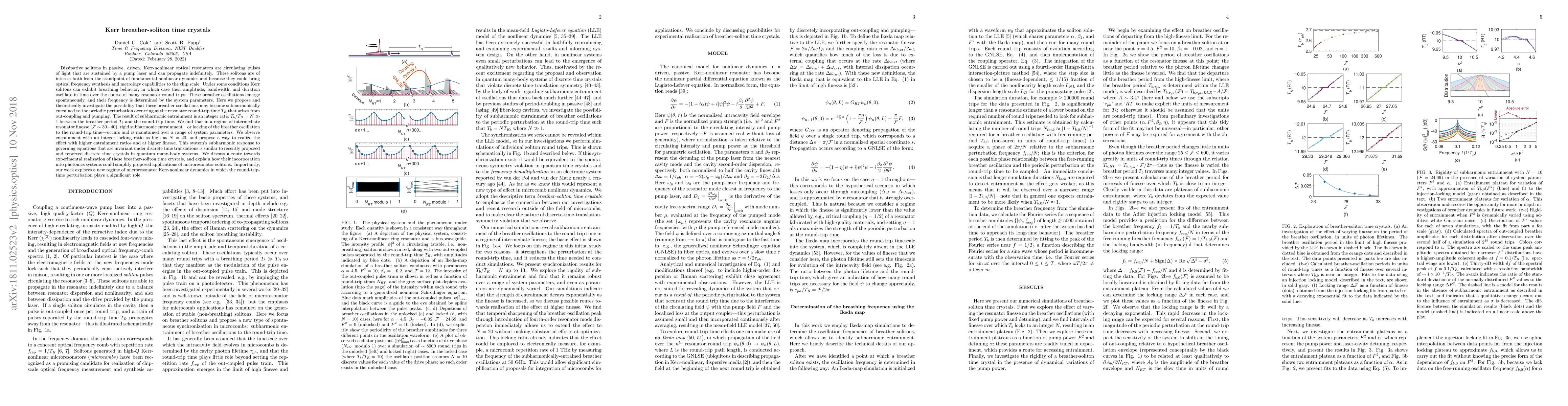 This paper proposes the existence of Kerr breather-soliton time crystals in driven, Kerr-nonlinear optical resonators, where breather oscillations become subharmonically entrained to the resonator's round-trip time. The study finds rigid entrainment with locking ratios up to $N=20$ and suggests a method to achieve higher ratios, drawing parallels to discrete time crystals in quantum systems.