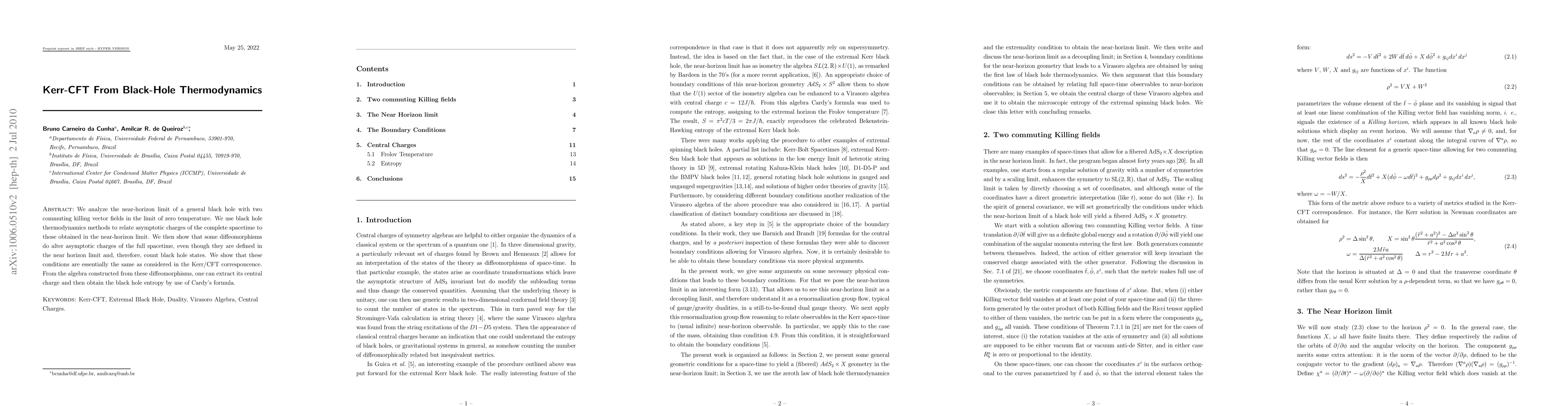 We analyze the near-horizon limit of a general black hole with two commuting killing vector fields in the limit of zero temperature. We use black hole thermodynamics methods to relate asymptotic charges of the complete spacetime to those obtained in the near-horizon limit. We then show that some diffeomorphisms do alter asymptotic charges of the full spacetime, even though they are defined in the near horizon limit and, therefore, count black hole states. We show that these conditions are essentially the same as considered in the Kerr/CFT corresponcence. From the algebra constructed from these diffeomorphisms, one can extract its central charge and then obtain the black hole entropy by use of Cardy's formula.