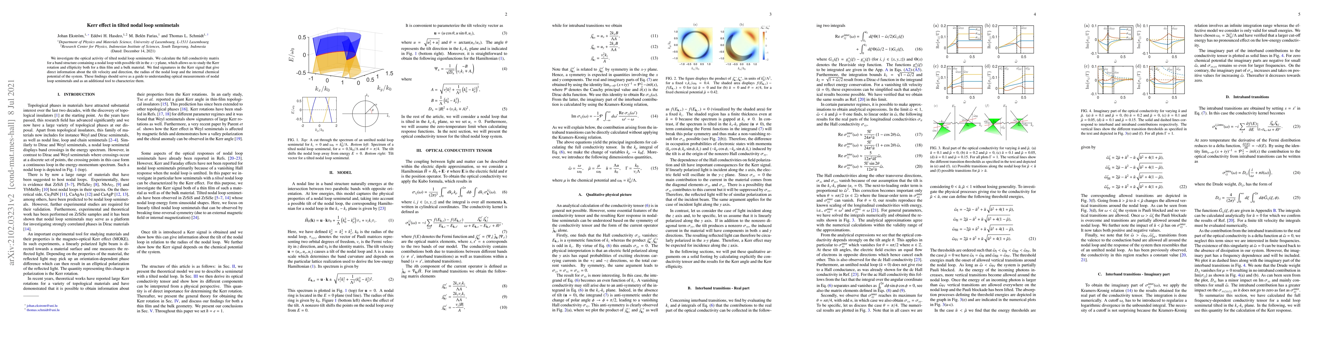 This paper explores the Kerr effect in tilted nodal loop semimetals, revealing how the optical activity depends on the tilt velocity, nodal loop radius, and internal chemical potential, providing insights into their optical characterization. The study calculates the full conductivity matrix for such materials to analyze Kerr rotation and ellipticity.