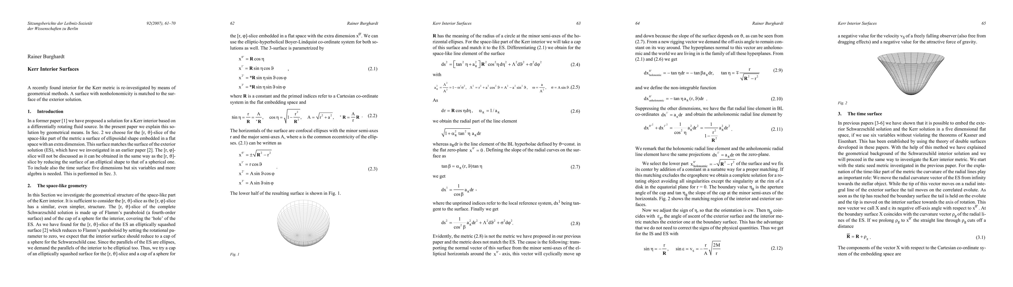 Summary: This paper re-examines a recently discovered interior solution for the Kerr metric using geometrical methods, focusing on a nonholonomic surface that matches the exterior solution. The study aims to provide deeper insights into the structure of rotating black holes.