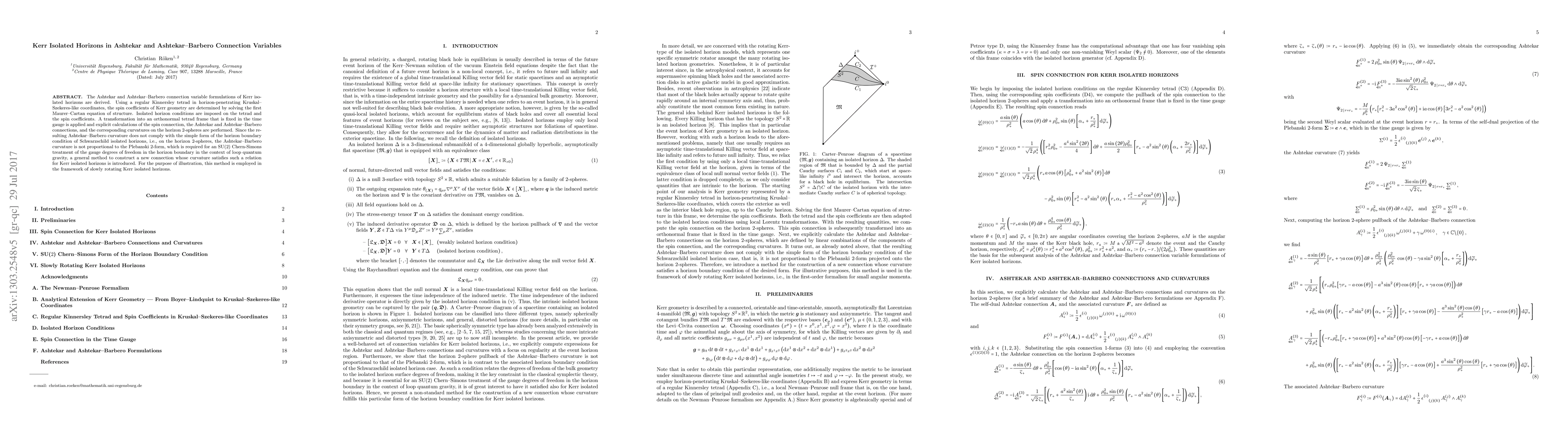 The Ashtekar and Ashtekar-Barbero connection variable formulations of Kerr isolated horizons are derived. Using a regular Kinnersley tetrad in horizon-penetrating Kruskal-Szekeres-like coordinates, the spin coefficients of Kerr geometry are determined by solving the first Maurer-Cartan equation of structure. Isolated horizon conditions are imposed on the tetrad and the spin coefficients. A transformation into an orthonormal tetrad frame that is fixed in the time gauge is applied and explicit calculations of the spin connection, the Ashtekar and Ashtekar-Barbero connections, and the corresponding curvatures on the horizon 2-spheres are performed. Since the resulting Ashtekar-Barbero curvature does not comply with the simple form of the horizon boundary condition of Schwarzschild isolated horizons, i.e., on the horizon 2-spheres, the Ashtekar-Barbero curvature is not proportional to the Plebanski 2-form, which is required for an SU(2) Chern-Simons treatment of the gauge degrees of freedom in the horizon boundary in the context of loop quantum gravity, a general method to construct a new connection whose curvature satisfies such a relation for Kerr isolated horizons is introduced. For the purpose of illustration, this method is employed in the framework of slowly rotating Kerr isolated horizons.