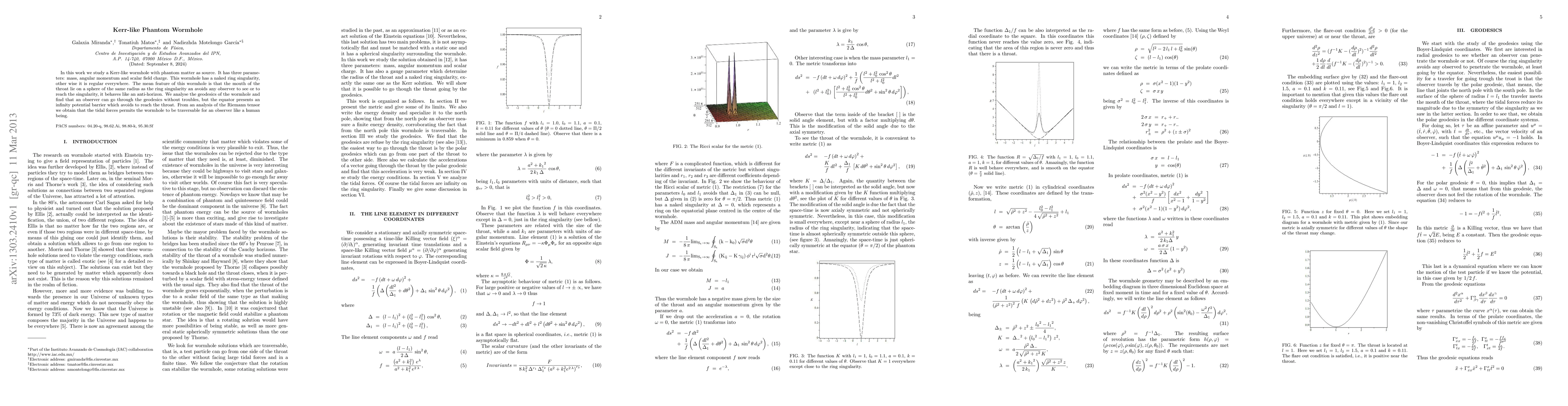 In this work we study a Kerr-like wormhole with phantom matter as source. It has three parameters: mass, angular momentum and scalar field charge. This wormhole has a naked ring singularity, other wise it is regular everywhere. The mean feature of this wormhole is that the mouth of the throat lie on a sphere of the same radius as the ring singularity an avoids any observer to see or to reach the singularity, it behaves like an anti-horizon. We analyse the geodesics of the wormhole and find that an observer can go through the geodesics without troubles, but the equator presents an infinity potential barrier which avoids to reach the throat. From an analysis of the Riemann tensor we obtain that the tidal forces permits the wormhole to be traversable for an observer like a human being.