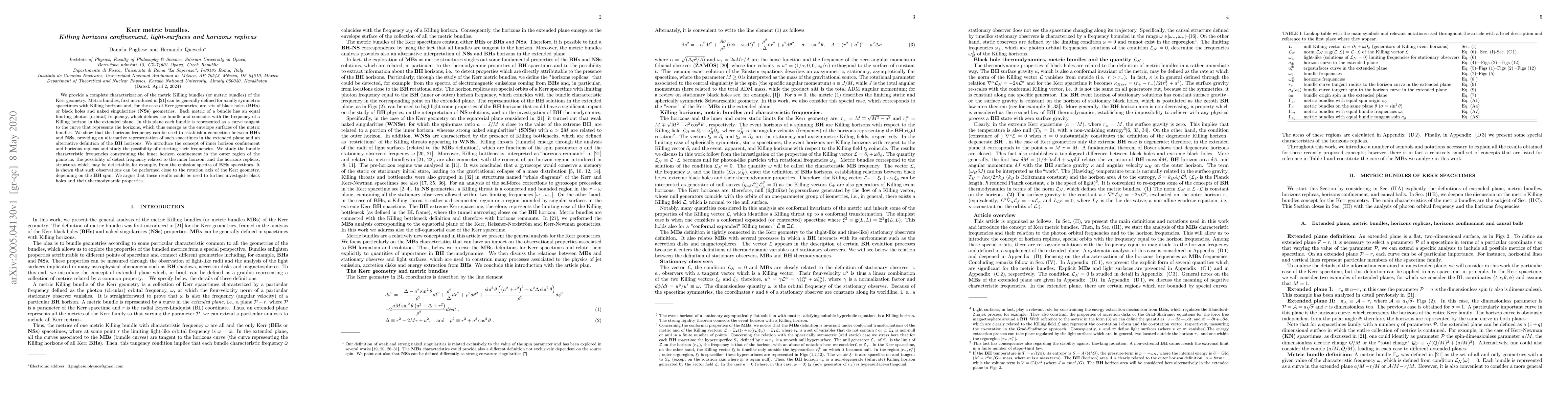 This paper characterizes metric Killing bundles of Kerr geometry, revealing sets of black holes and naked singularities with equal limiting photon frequencies. The study introduces inner horizon confinement and horizon replicas, suggesting potential detection of these structures via emission spectra near the rotation axis, potentially aiding in the investigation of black hole thermodynamics.
