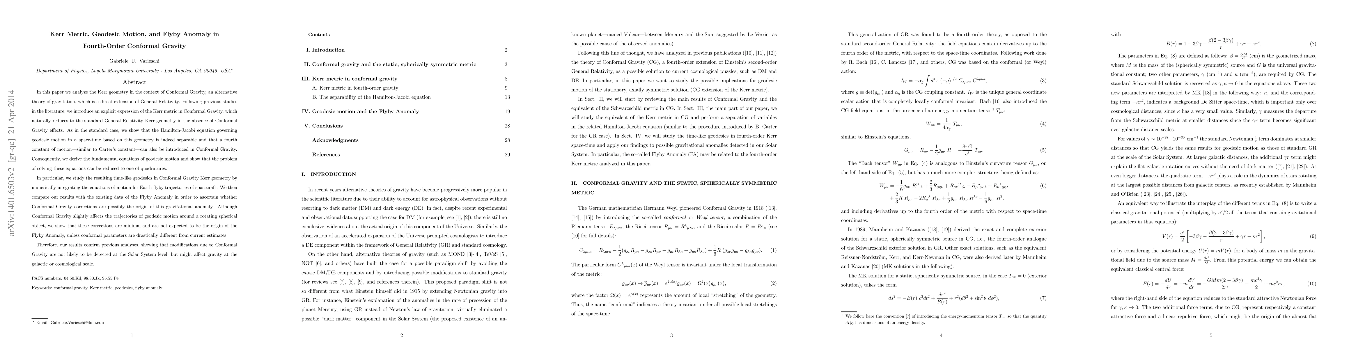 This paper examines the Kerr geometry within the framework of Conformal Gravity, exploring geodesic motion and its potential impact on the Flyby Anomaly. It finds that while Conformal Gravity introduces slight modifications to geodesic trajectories, these are minimal and unlikely to explain the Flyby Anomaly, suggesting that such effects are more significant at galactic or cosmological scales.