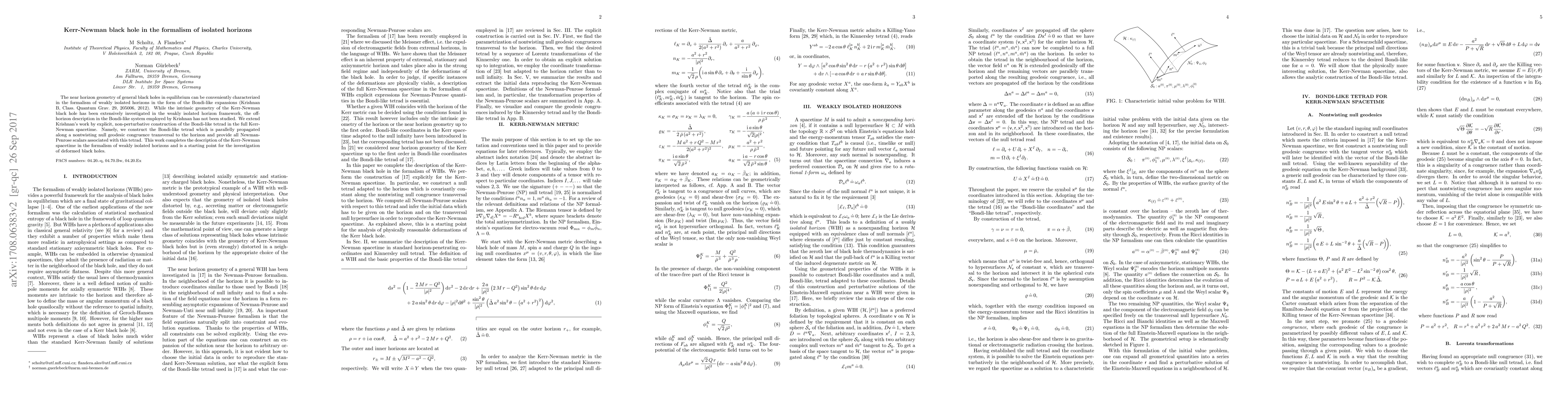 This paper extends the weakly isolated horizon framework to fully describe the Kerr-Newman black hole by constructing a Bondi-like tetrad and calculating associated Newman-Penrose scalars, completing the off-horizon description and paving the way for future studies on deformed black holes.