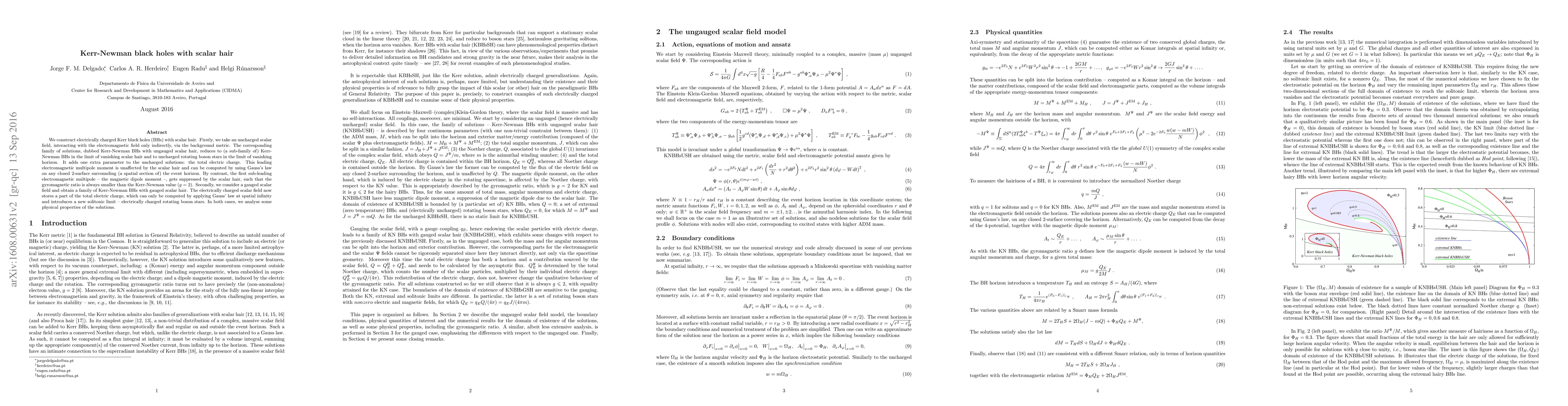 We construct electrically charged Kerr black holes (BHs) with scalar hair. Firstly, we take an uncharged scalar field, interacting with the electromagnetic field only indirectly, via the background metric. The corresponding family of solutions, dubbed Kerr-Newman BHs with ungauged scalar hair, reduces to (a sub-family of) Kerr-Newman BHs in the limit of vanishing scalar hair and to uncharged rotating boson stars in the limit of vanishing horizon. It adds one extra parameter to the uncharged solutions: the total electric charge. This leading electromagnetic multipole moment is unaffected by the scalar hair and can be computed by using Gauss's law on any closed 2-surface surrounding (a spatial section of) the event horizon. By contrast, the first sub-leading electromagnetic multipole -- the magnetic dipole moment --, gets suppressed by the scalar hair, such that the gyromagnetic ratio is always smaller than the Kerr-Newman value ($g=2$). Secondly, we consider a gauged scalar field and obtain a family of Kerr-Newman BHs with gauged scalar hair. The electrically charged scalar field now stores a part of the total electric charge, which can only be computed by applying Gauss' law at spatial infinity and introduces a new solitonic limit -- electrically charged rotating boson stars. In both cases, we analyse some physical properties of the solutions.