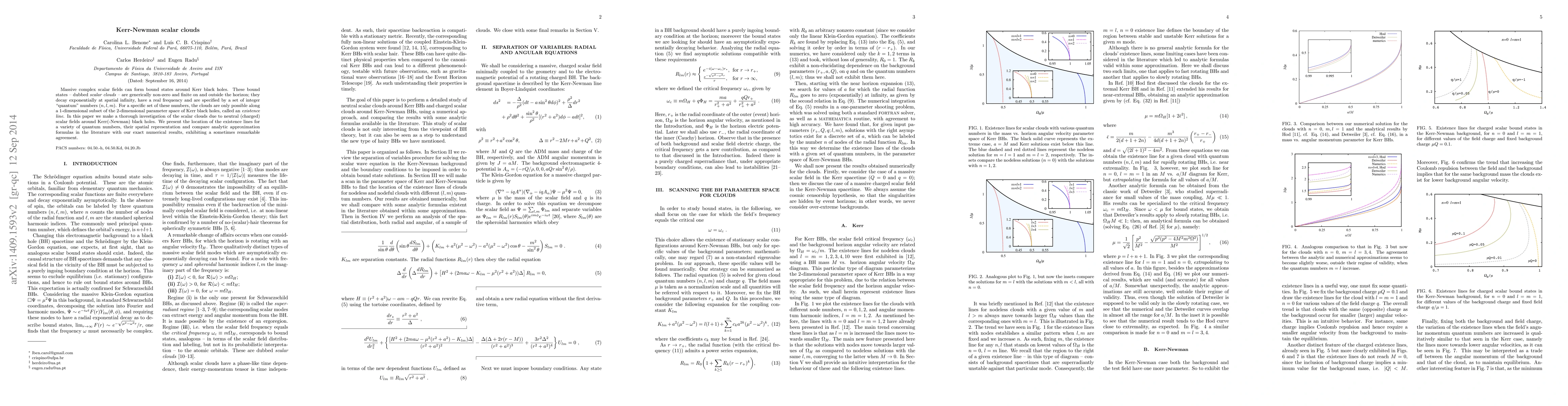 Researchers discovered scalar clouds around Kerr black holes, which form bound states of complex scalar fields; these clouds have specific properties and can only exist on certain lines in the parameter space of the black hole.