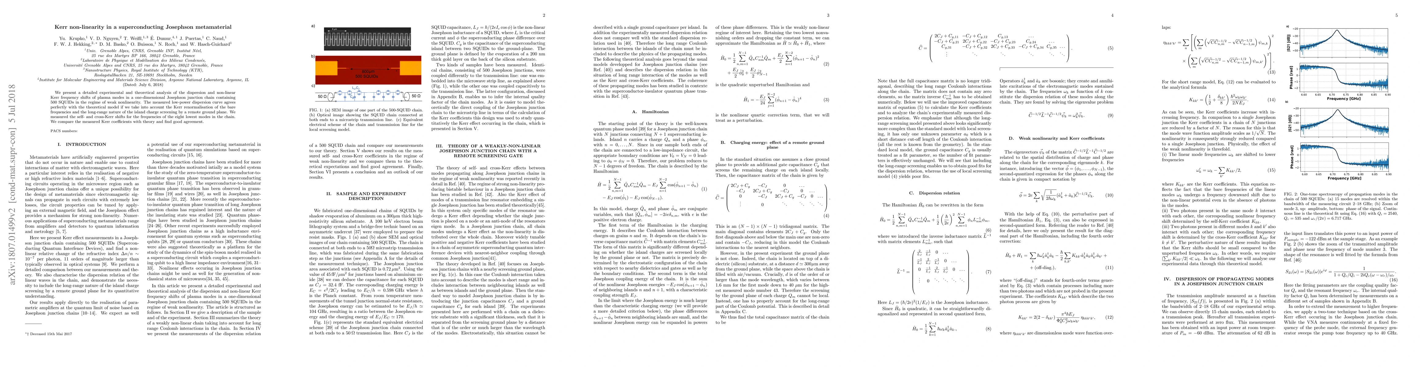 This paper investigates the Kerr non-linearity in a superconducting Josephson metamaterial, demonstrating excellent agreement between experimental measurements and theoretical models of plasma modes in a Josephson junction chain. The study highlights the importance of Kerr renormalisation and charge screening in explaining observed frequency shifts.