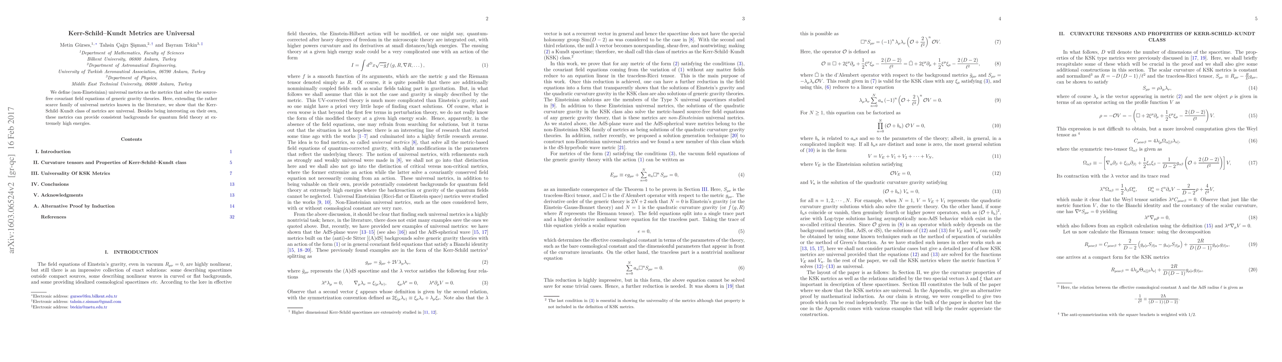 This paper demonstrates that Kerr-Schild-Kundt metrics solve the source-free covariant field equations of generic gravity theories, thus classifying them as universal metrics. These metrics offer consistent backgrounds for quantum field theory at ultra-high energies.