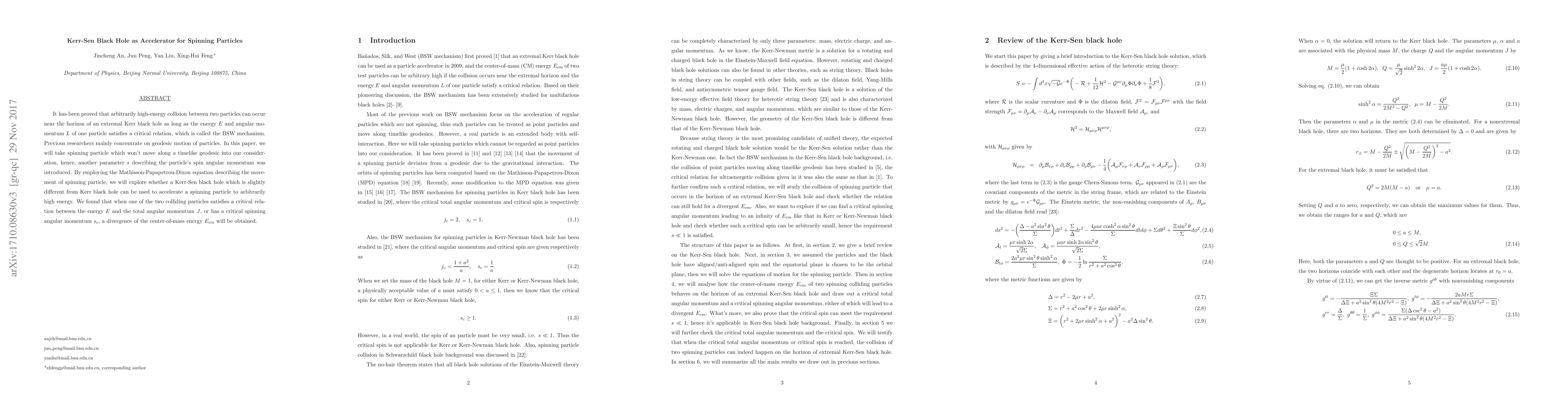 This paper explores the potential of a Kerr-Sen black hole to accelerate spinning particles to arbitrarily high energies via the BSW mechanism, introducing the spin angular momentum parameter $s$. It finds that under specific conditions relating the energy, total angular momentum, or critical spinning angular momentum, the center-of-mass energy diverges.