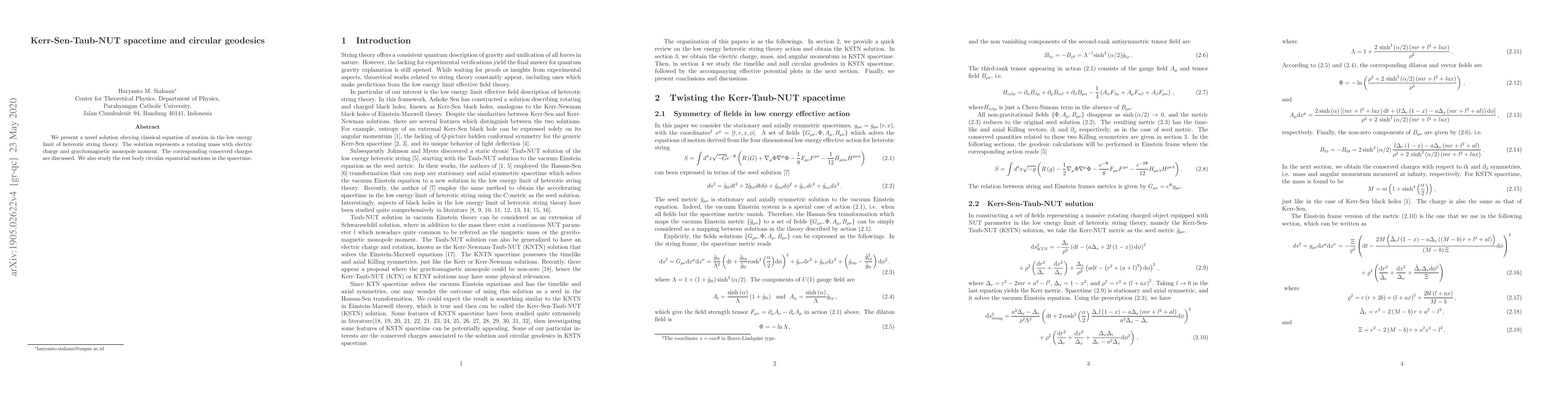 We present a novel solution obeying classical equation of motion in the low energy limit of heterotic string theory. The solution represents a rotating mass with electric charge and gravitomagnetic monopole moment. The corresponding conserved charges are discussed. We also study the test body circular equatorial motions in the spacetime.
