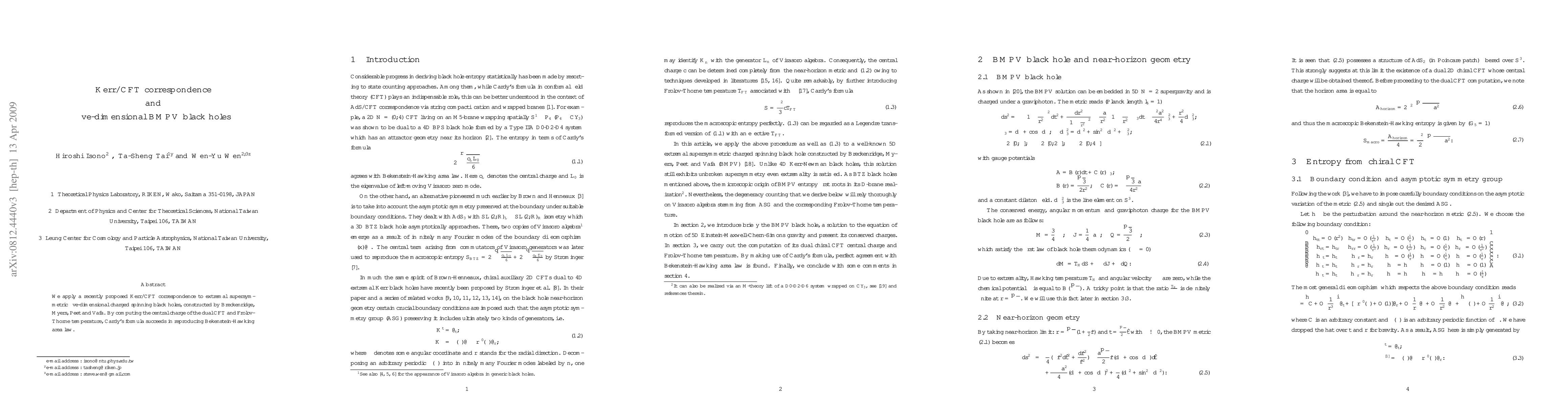 This paper applies the Kerr/CFT correspondence to five-dimensional BMPV black holes, showing that Cardy's formula accurately reproduces the Bekenstein-Hawking area law by computing the central charge of the dual conformal field theory and the Frolov-Thorne temperature.