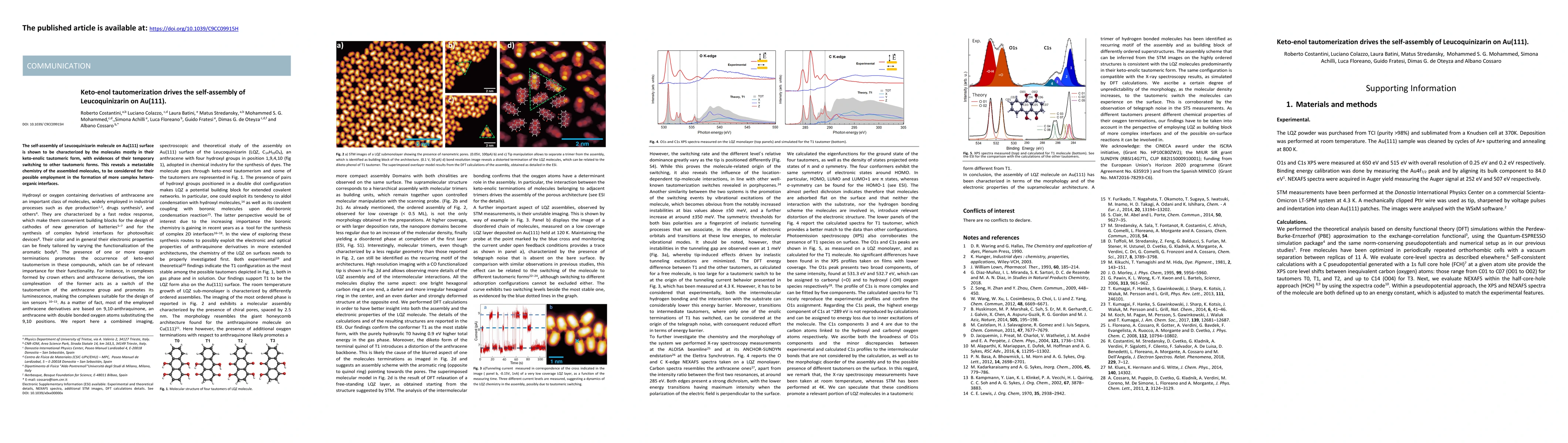 Leucoquinizarin molecules on Au(111) surface mostly assemble in keto-enolic tautomeric form, with temporary switching to other forms, revealing a metastable chemistry. This self-assembly shows promise for forming complex hetero-organic interfaces.